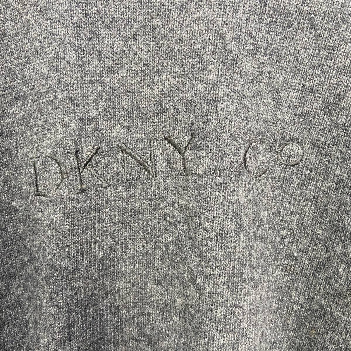 ☆90s☆DKNY☆ダナキャランニューヨーク☆ロゴ刺繍セーター☆ラムウール☆チャコールグレー☆XL☆