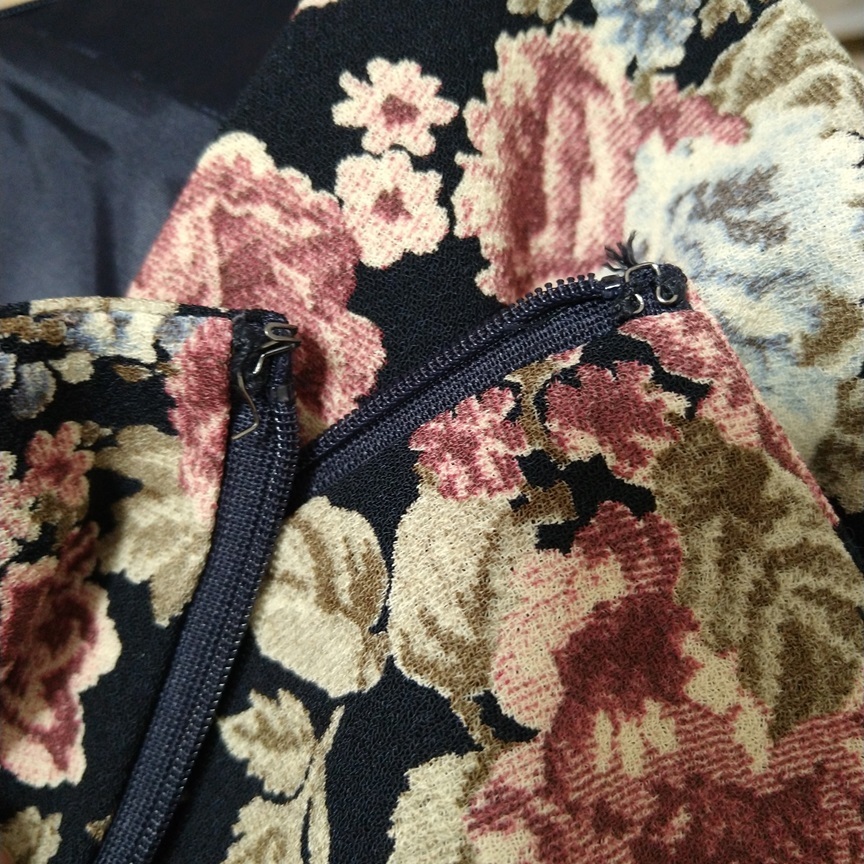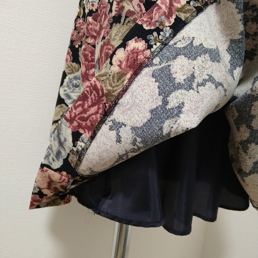 お色は、黒字にベージュやピンク系、水色などの花の柄です。