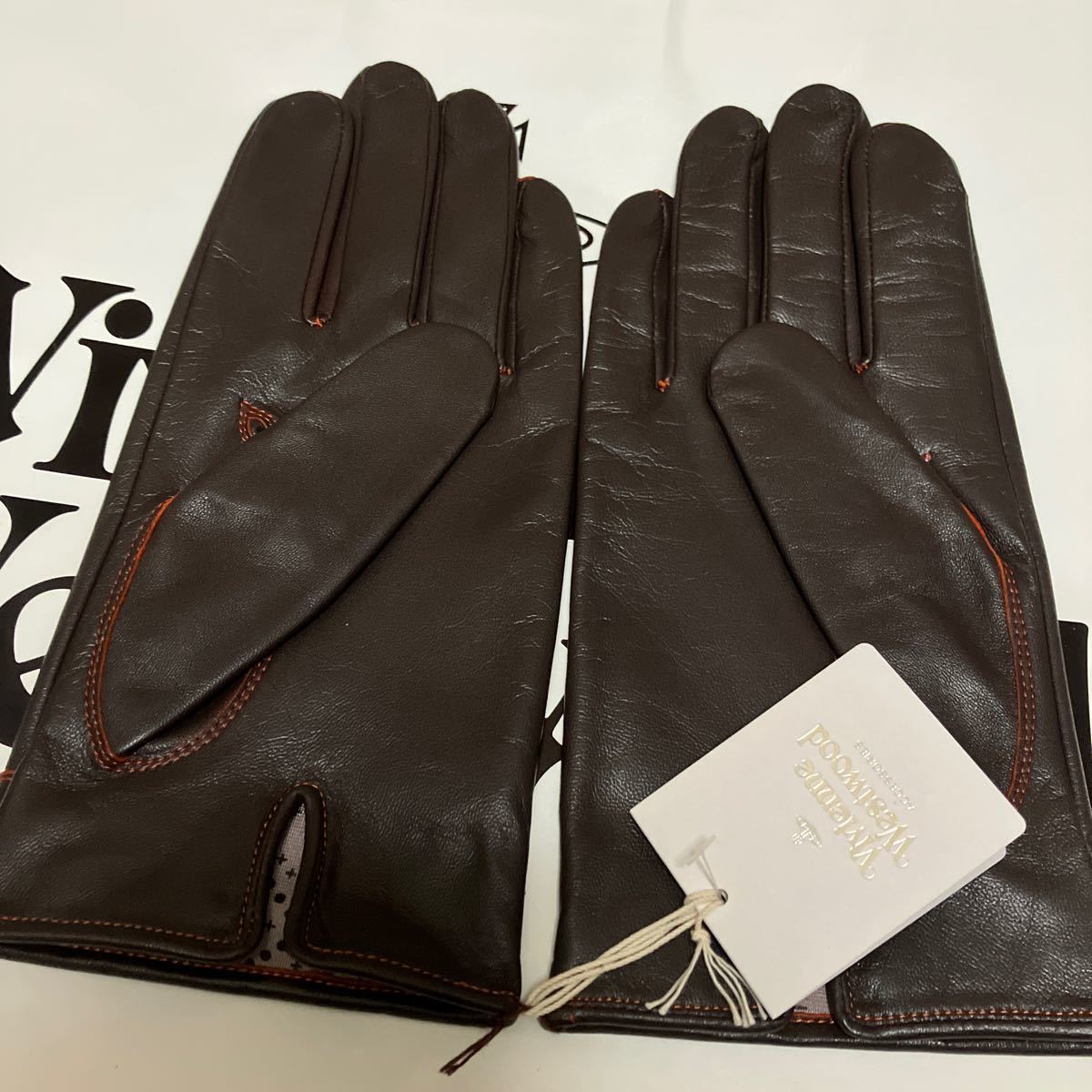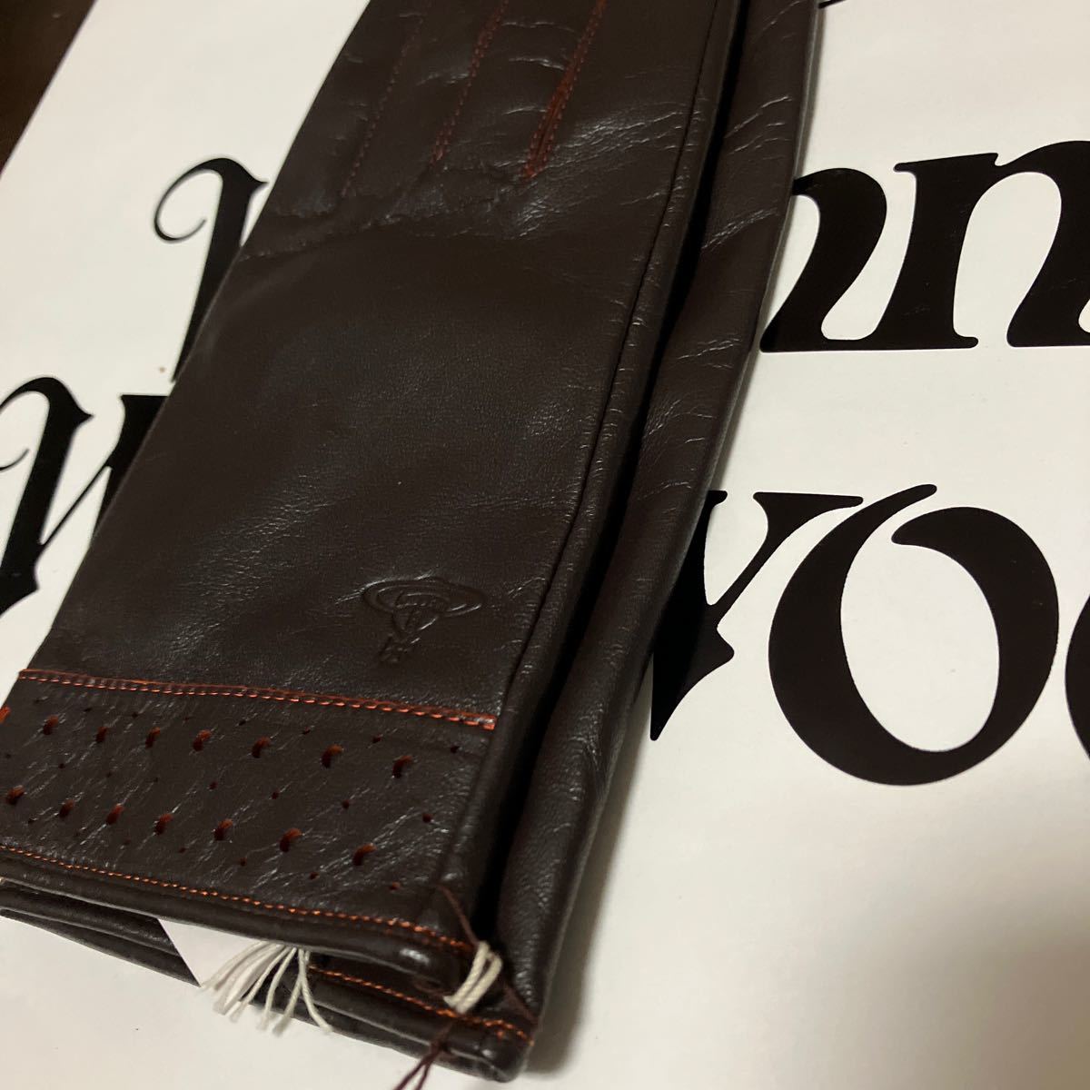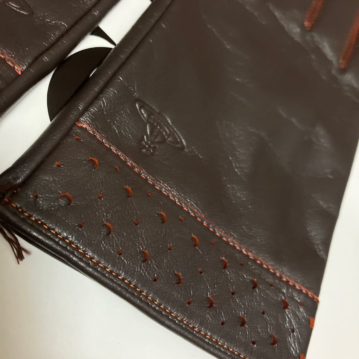 送料込●新品●Vivienne Westwood 羊革手袋 ブラウン×赤ラインA メンズ25cm 縦24cm ×横10.5cmヴィヴィアンウエストウッド レザー