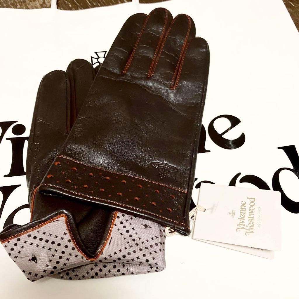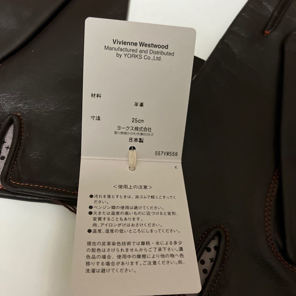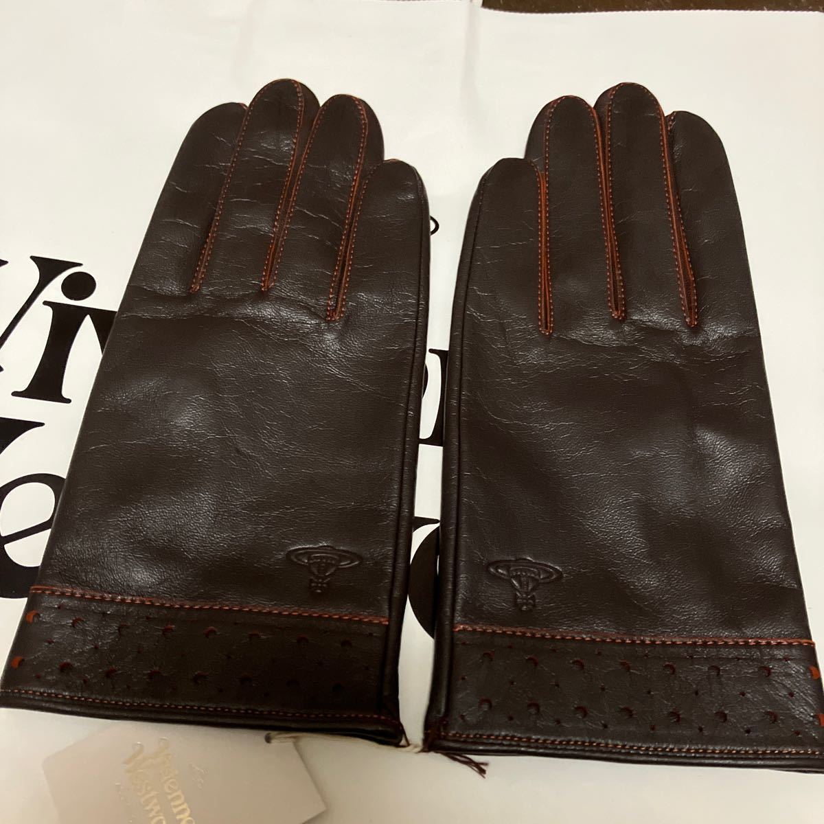 送料込●新品●Vivienne Westwood 羊革手袋 ブラウン×赤ラインA メンズ25cm 縦24cm ×横10.5cmヴィヴィアンウエストウッド レザー