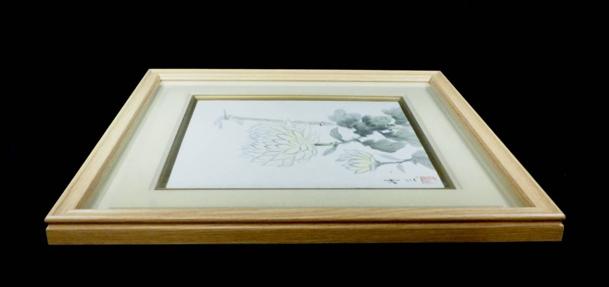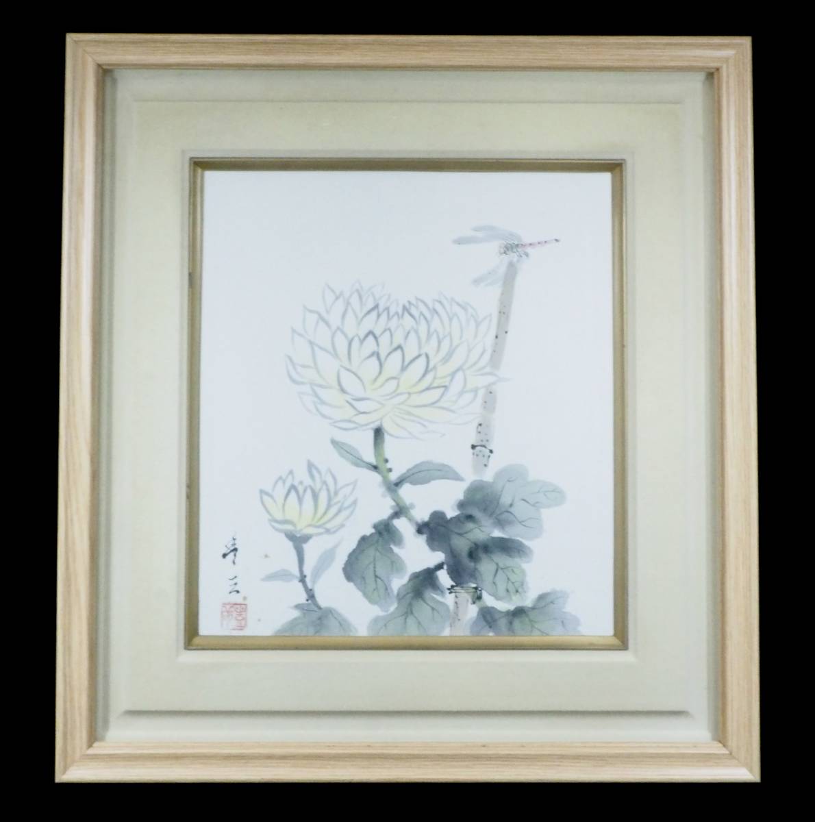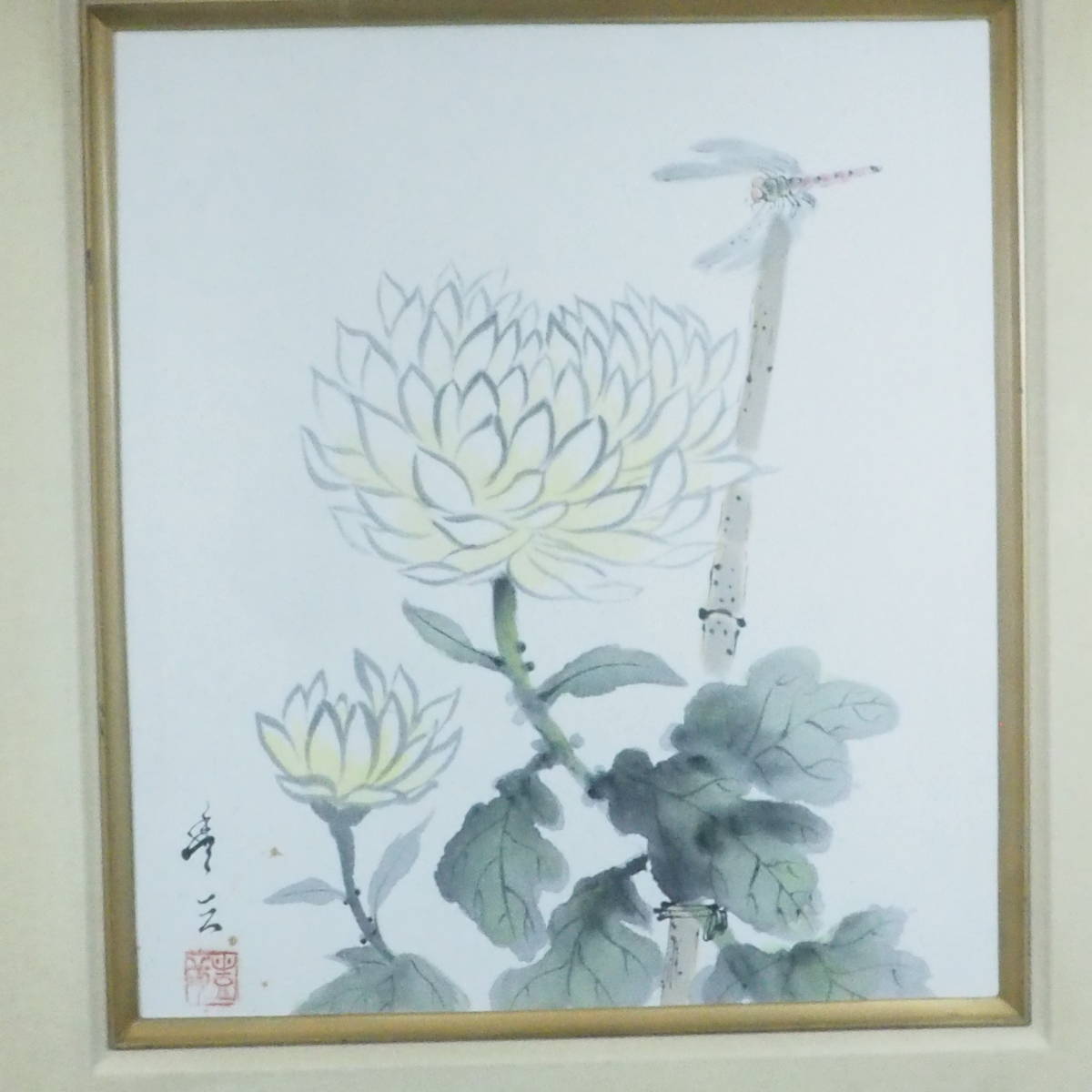昭和ビンテージ 日本画  菊に蜻蛉  在銘品 色紙額付き