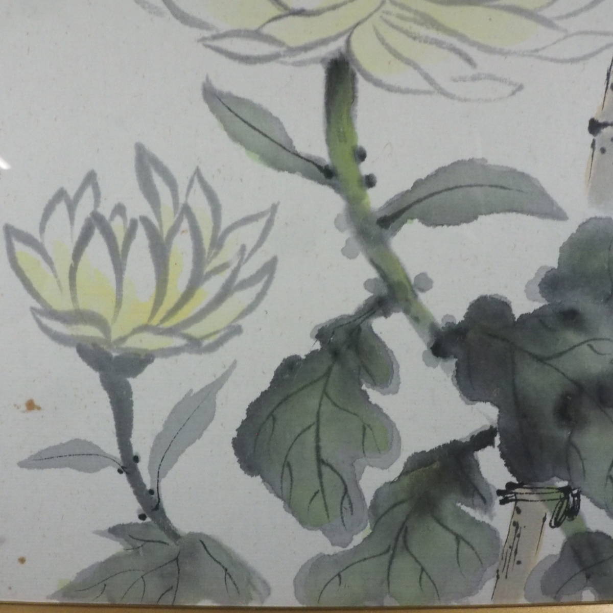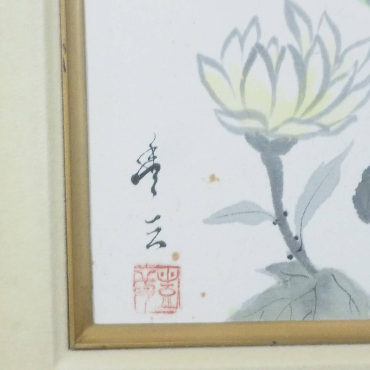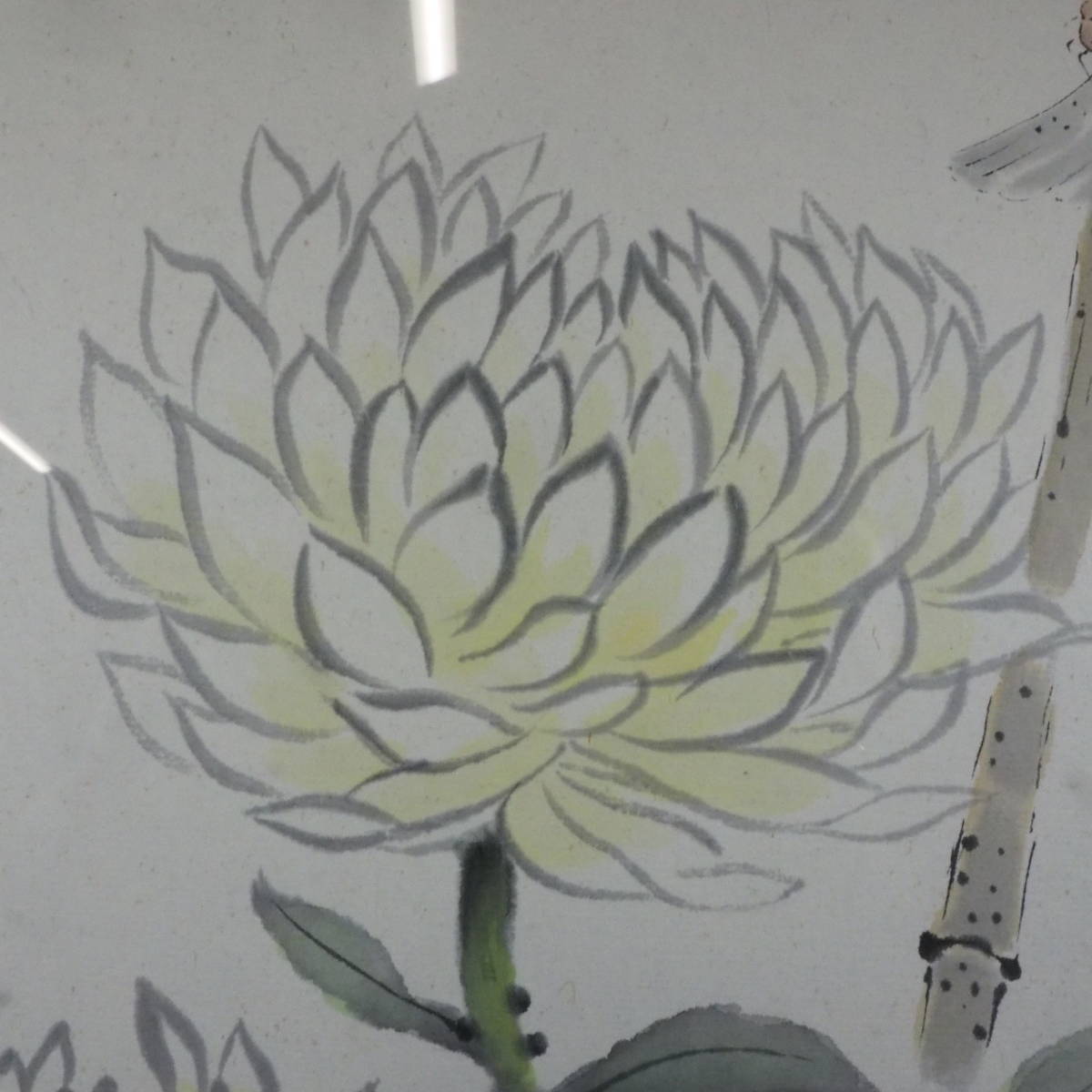昭和ビンテージ 日本画  菊に蜻蛉  在銘品 色紙額付き
