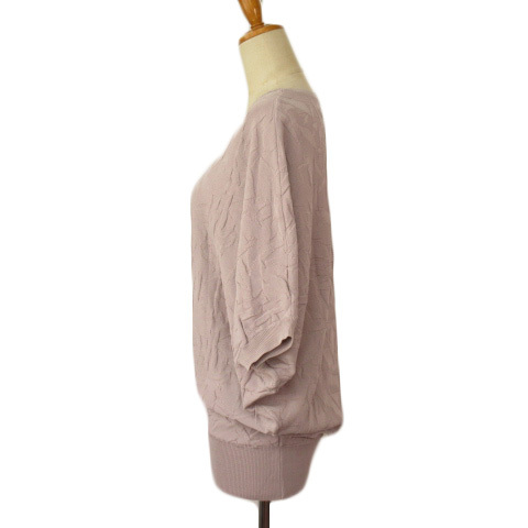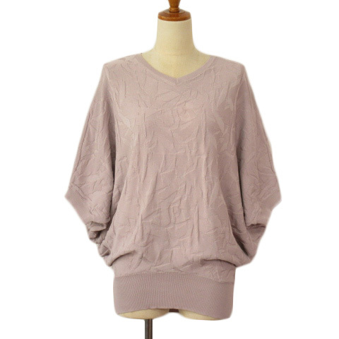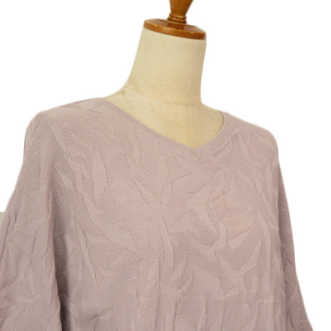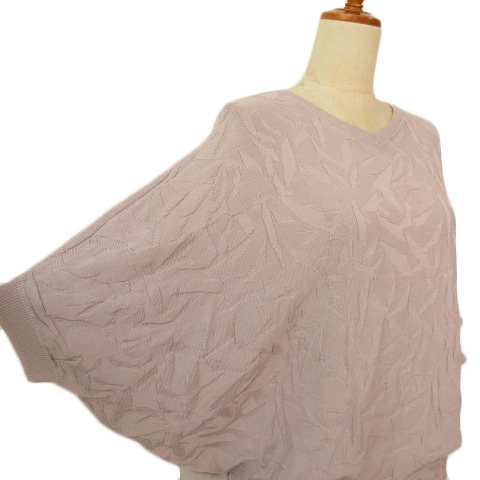 Provador 麻布プロバドール カットソー ニット Vネック ジャガード ドルマンスリーブ S~LL ピンクベージュ レディース