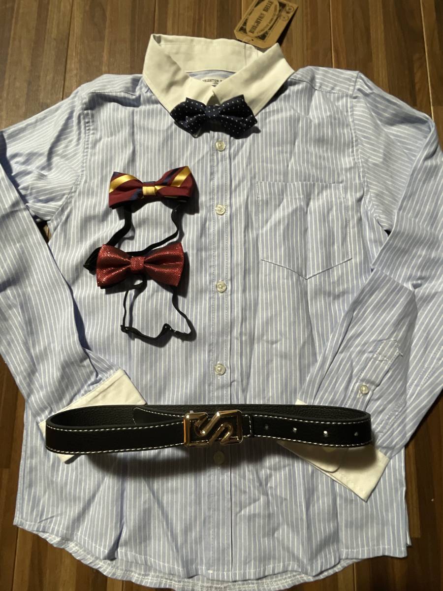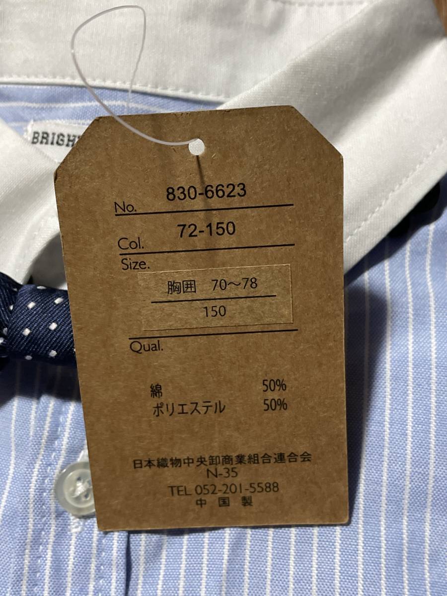 新品150cm.水色ストライプ長袖シャツです。