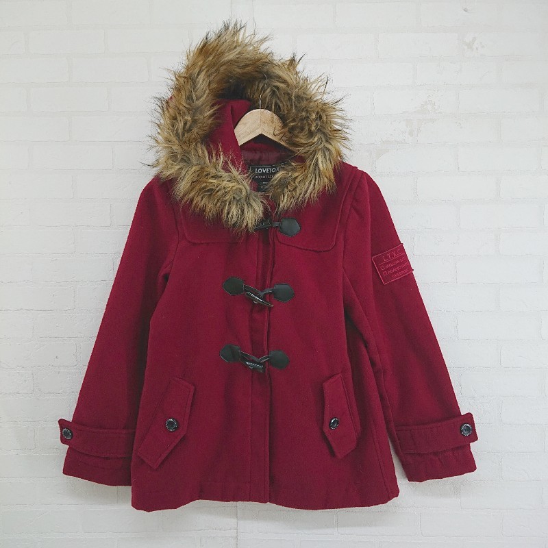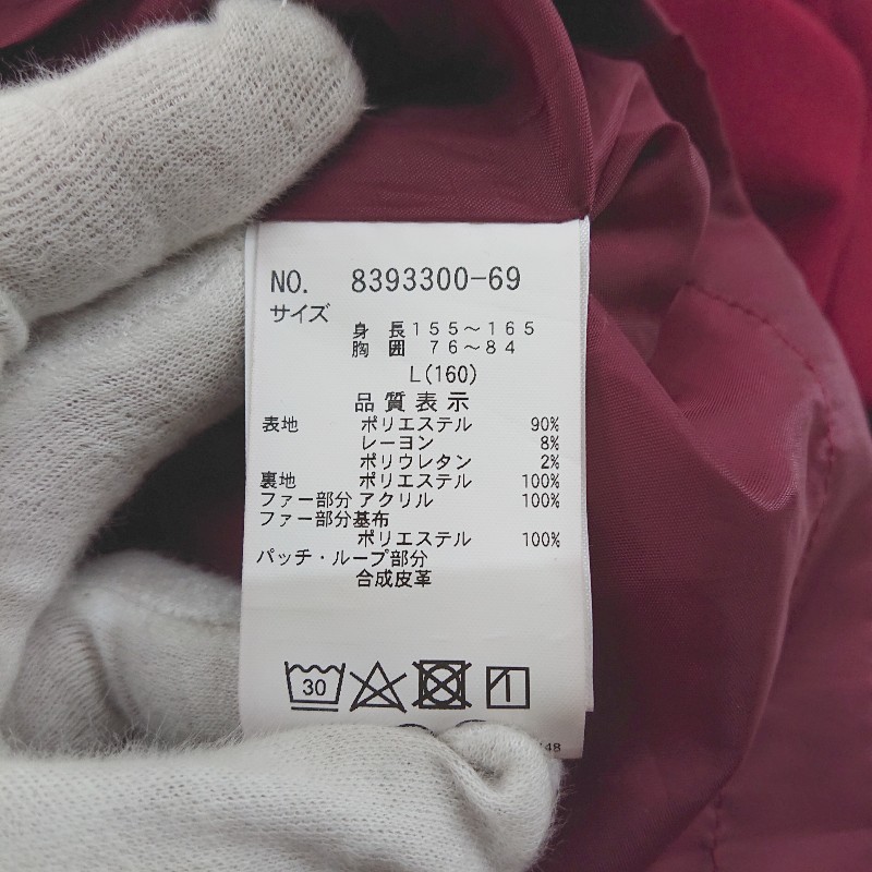 ◇ LOVETOXIC フェイクファー ジップアップ キッズ 子供服 長袖 ダッフル コート サイズL 160 ダークレッド系 レディース E