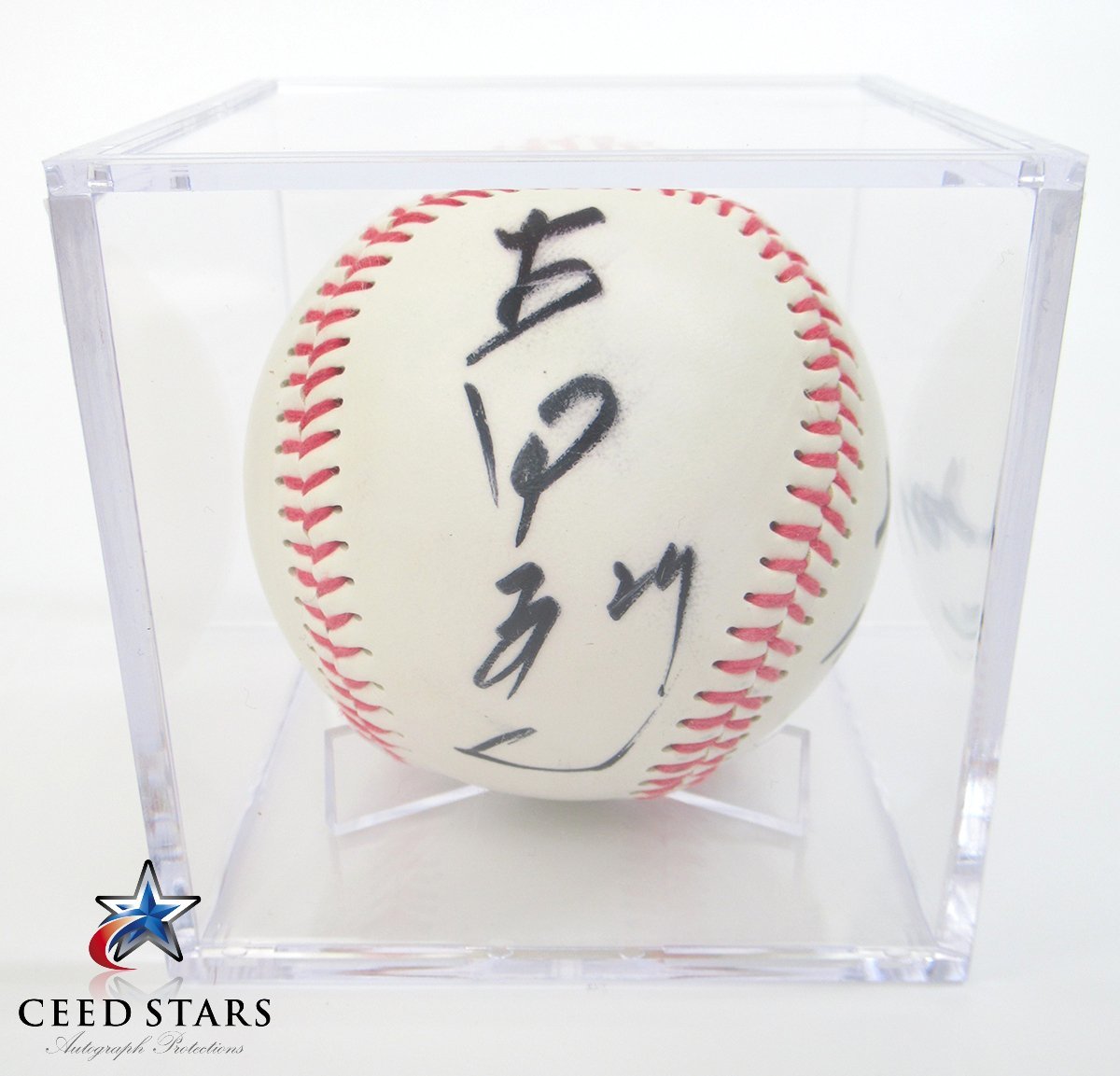 ◆  コレクターの定番、ウルトラプロ社新品サインボールケース付き。UVカット(SPF65相当)ボールの日焼け、サインの退色を最小限にとどめます。