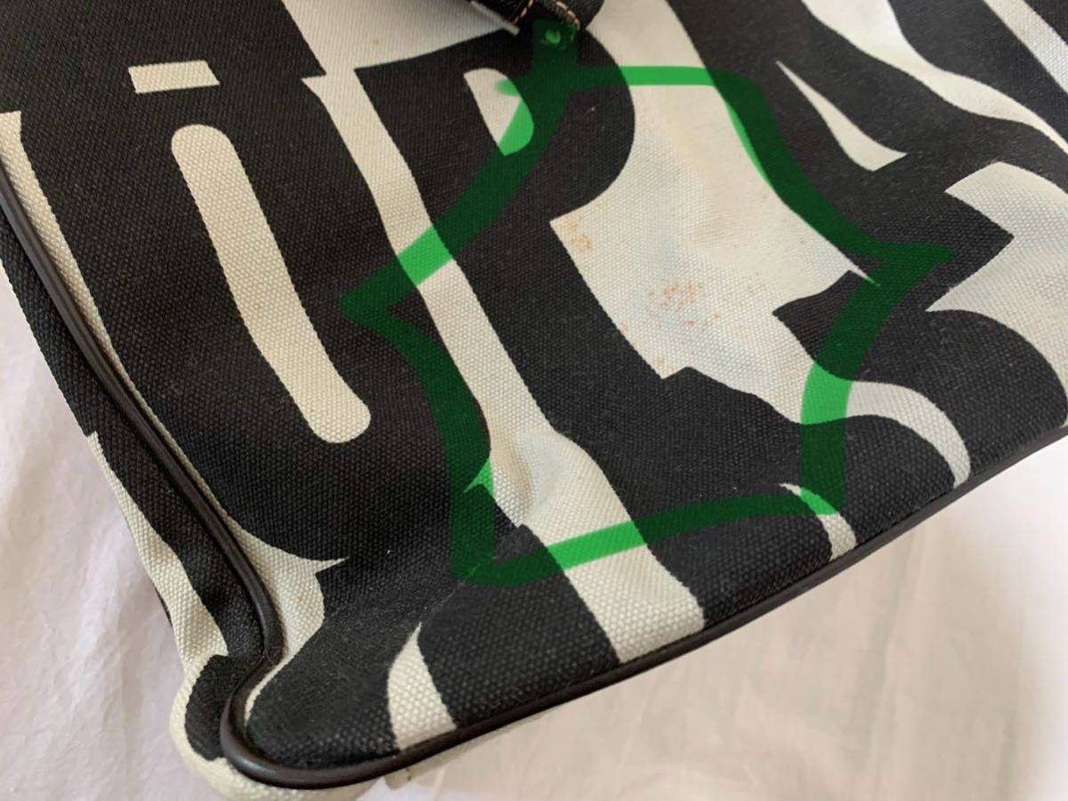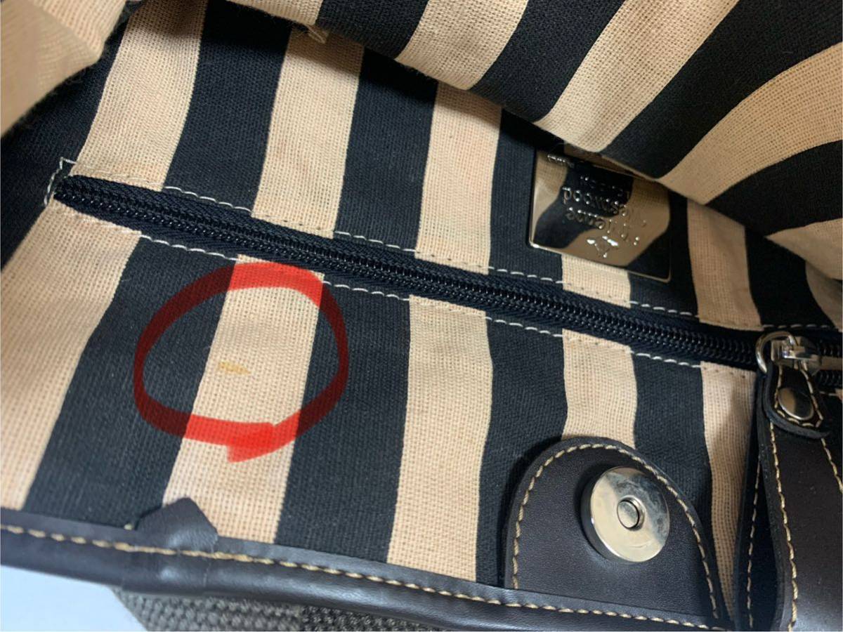 片方の表面とマチの部分、まばらに広くあります。写真でご確認ください。
