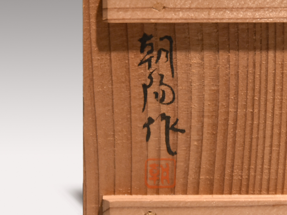 横山朝陽 (明治29年~昭和52年)東京生 1934(昭和9)年市川市で窯を開く 板谷波山とも交流があり、東陶会の結成には創立会員として参画。現代の茶陶の創作振興に力を尽くし、巧匠会などで活躍した |
