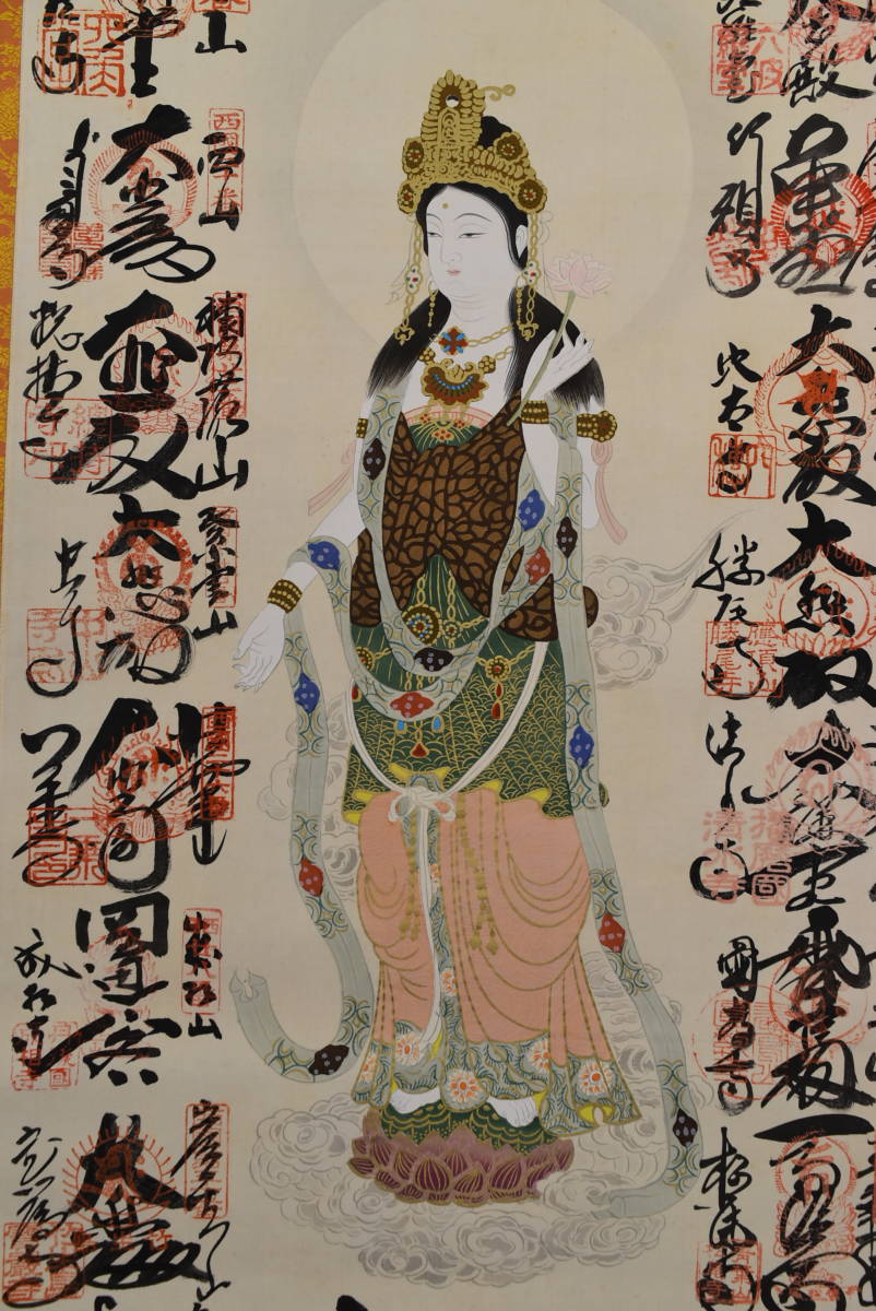 西国三十三ヶ所/西国三十三箇所霊場集印肉筆掛軸//掛軸☆宝船☆AB-378