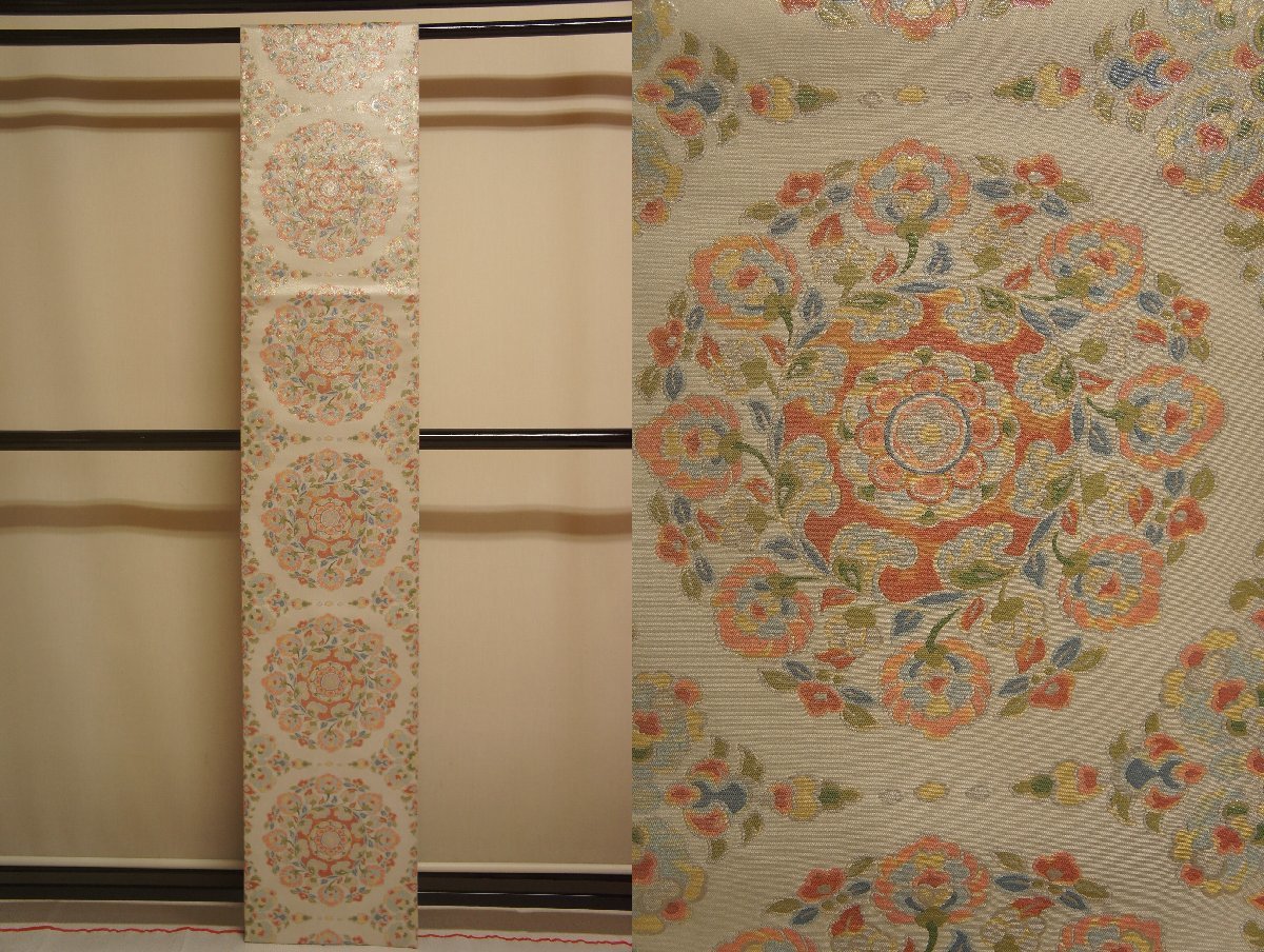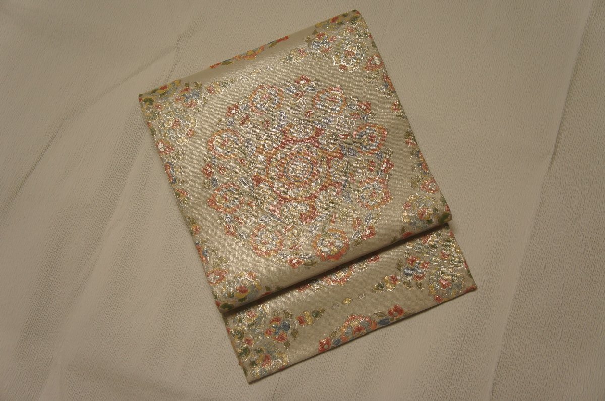 商品名特選『山口伊太郎』プラチナ箔錦地正倉院花華文袋帯[O14344]