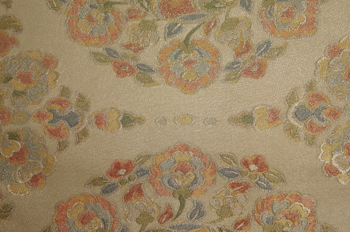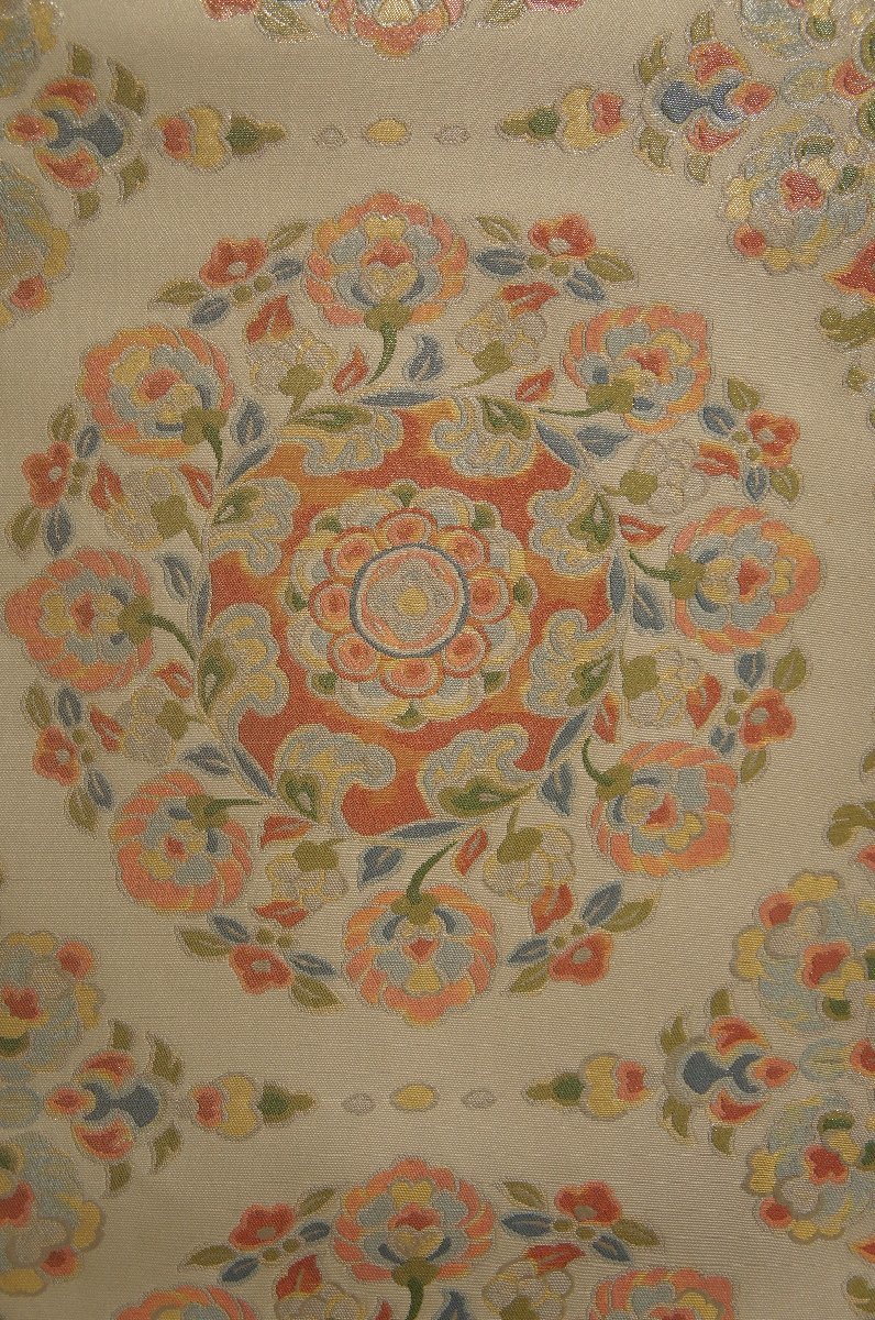 帯柄附六通柄 プラチナ箔錦地正倉院花華文袋帯