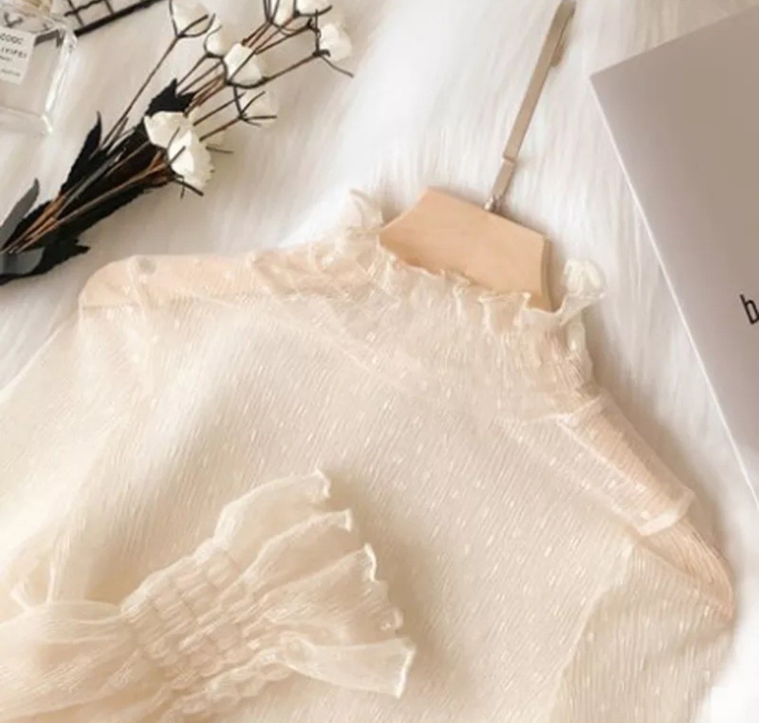シアーインナー シアーブラウス インナーブラウス トップス インナー ハイネック シアートップス カットソー シースルー ロングスリーブ レイヤード 無地 韓国ファッション 韓国コーデ