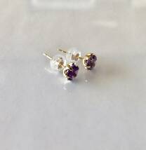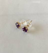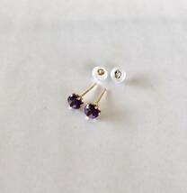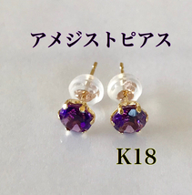 アメジストピアスK18ピアス アメジスト 2月誕生石 大粒ピアス 送料無料 未使用