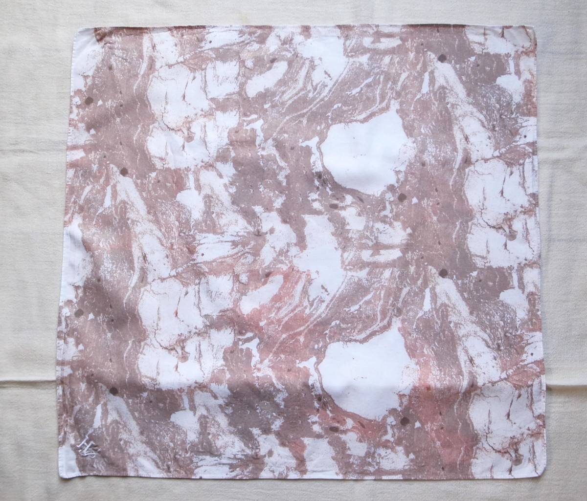 コットンのマーブル柄で縦49㎝、横52㎝。