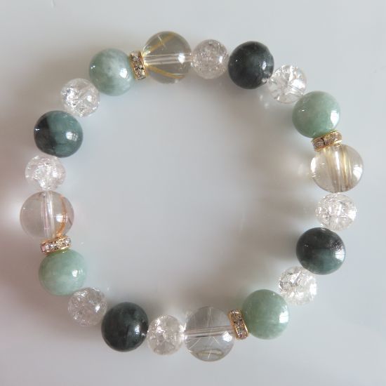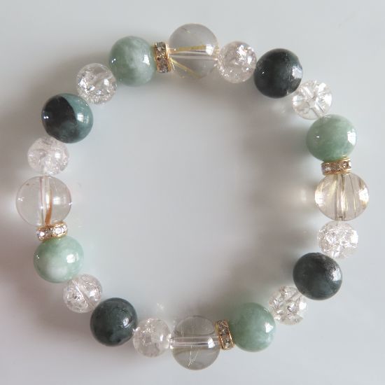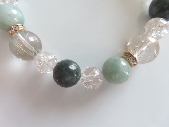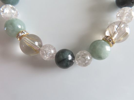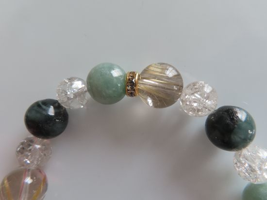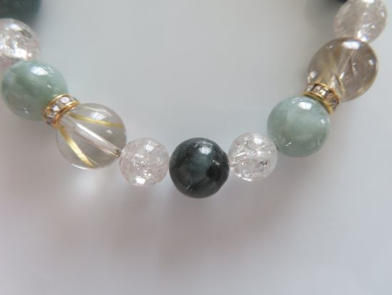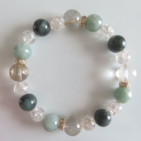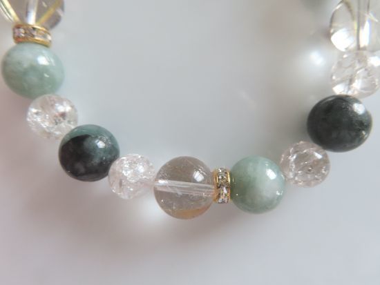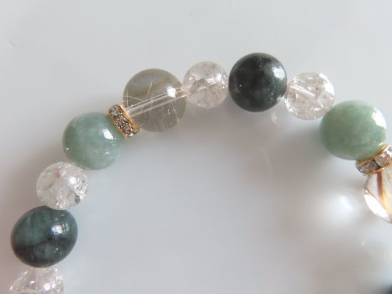 ヒスイ、エメラルド、ルチルクォーツ、スモーキークォーツのブレスレット | |||