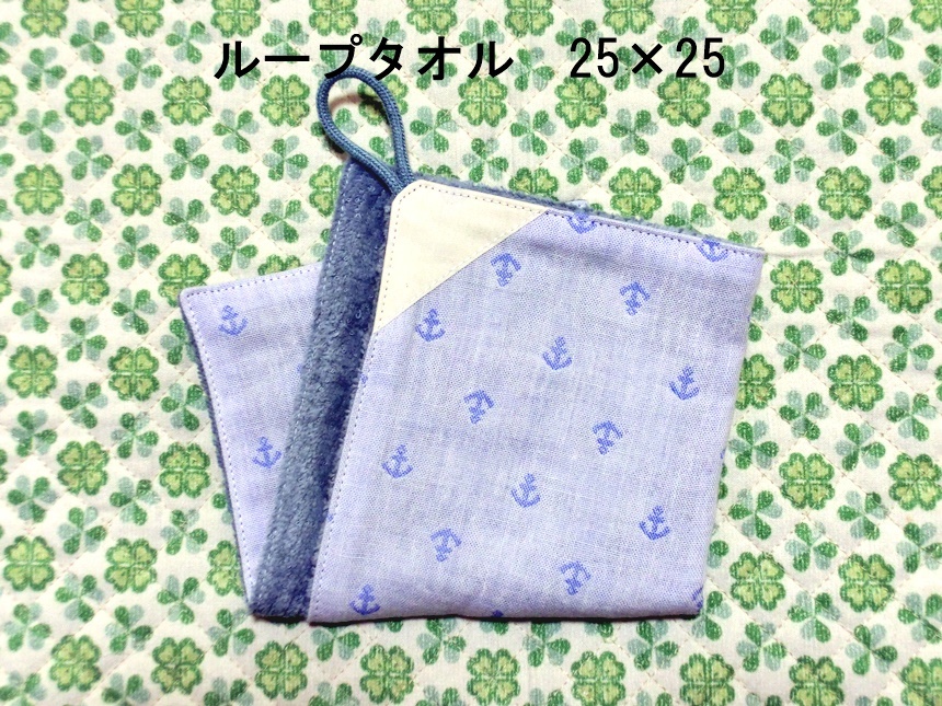 ハンドメイド・正方形25×25センチのダブルガーゼ&タオルで仕上げました、ループ付きタオルハンカチです。 ループの角は名前テープを縫い付けていますので、油性ペンで直接お名前を記入できます。 薄すぎず、厚すぎず、吸水性と速乾性にこだわりました。 型崩れ防止のために、ぐるっと一周ステッチをしてあります。 タオル生地は、肌触りが柔らかく気持ちのいいループをカットしてある国産シャーリングタオル生地を使用しております。 赤ちゃんから大人の方まで、ご使用いただけると思います。 職業用ミシンで作製しました。 手持ちの生地すべては出品できておりません。 出品中の生地でご希望の生地・ご希望のサイズがありましたら質問よりご連絡ください。 生地の在庫がありましたら、対応させていただきます。(タオル生地の色は画像と同じものになります) 商品名にご依頼者様のオーダーと記載し出品させていただきます。 サイズ:25×25センチ 素 材:ダブルガーゼ&国産シャーリングタオル生地 | ||