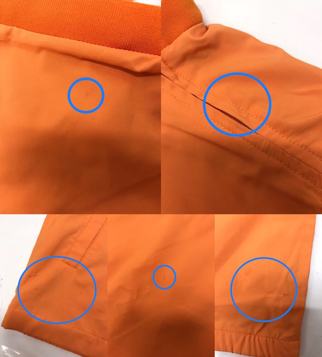 首周りと左肩部分、背中や裾付近に汚れがあります。