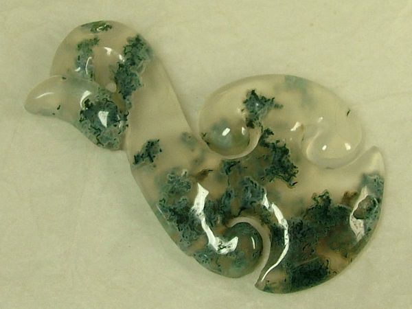 ★商品説明★ | サイズ:45×26×厚5mm 重さ:6.8g 石の種類は瑪瑙です。緑系で透明感の有る氷種です。個性的デザインの綺麗なトップ(彫りは片面のみ)。上部に貫通穴が有ります。オリジナルペンダントや下げ飾り等に。 |