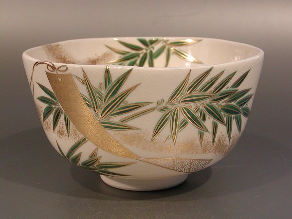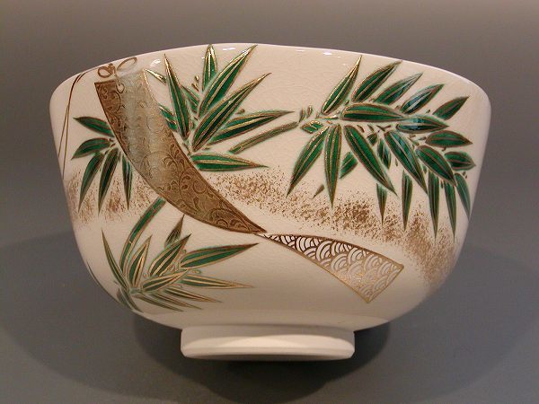 | ■茶道具 抹茶茶碗 色絵 七夕画、 京都 相模竜泉作 | |