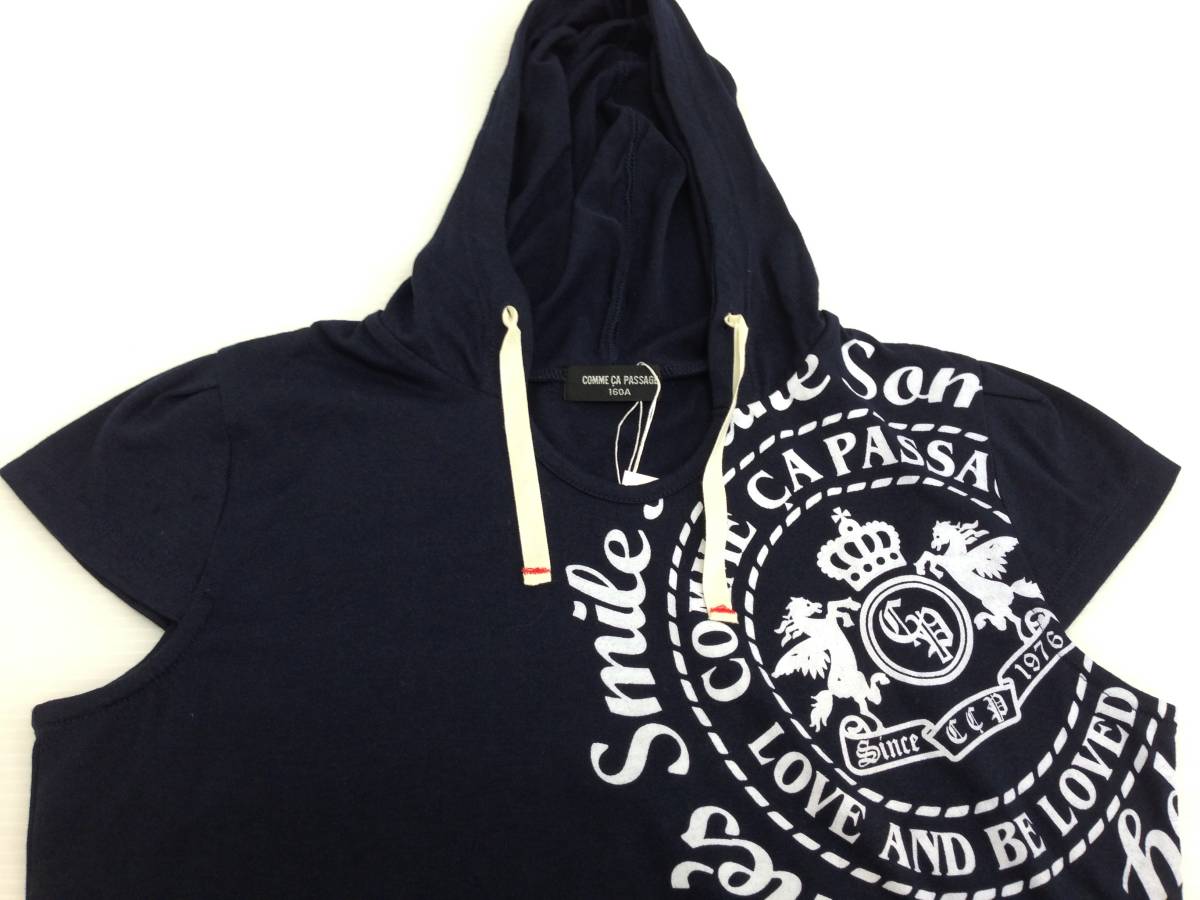COMME CA PASSAGE/コムサパサージュ フード付 カットソー デザインTシャツ 紺 160㎝