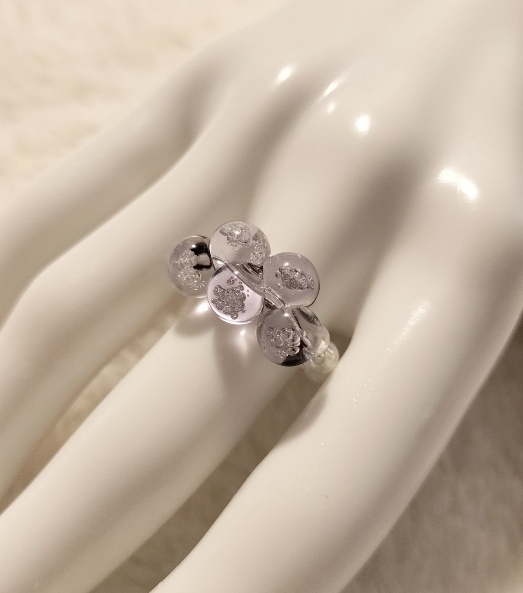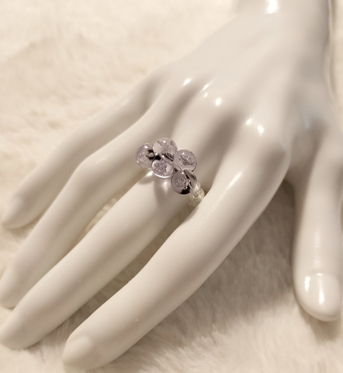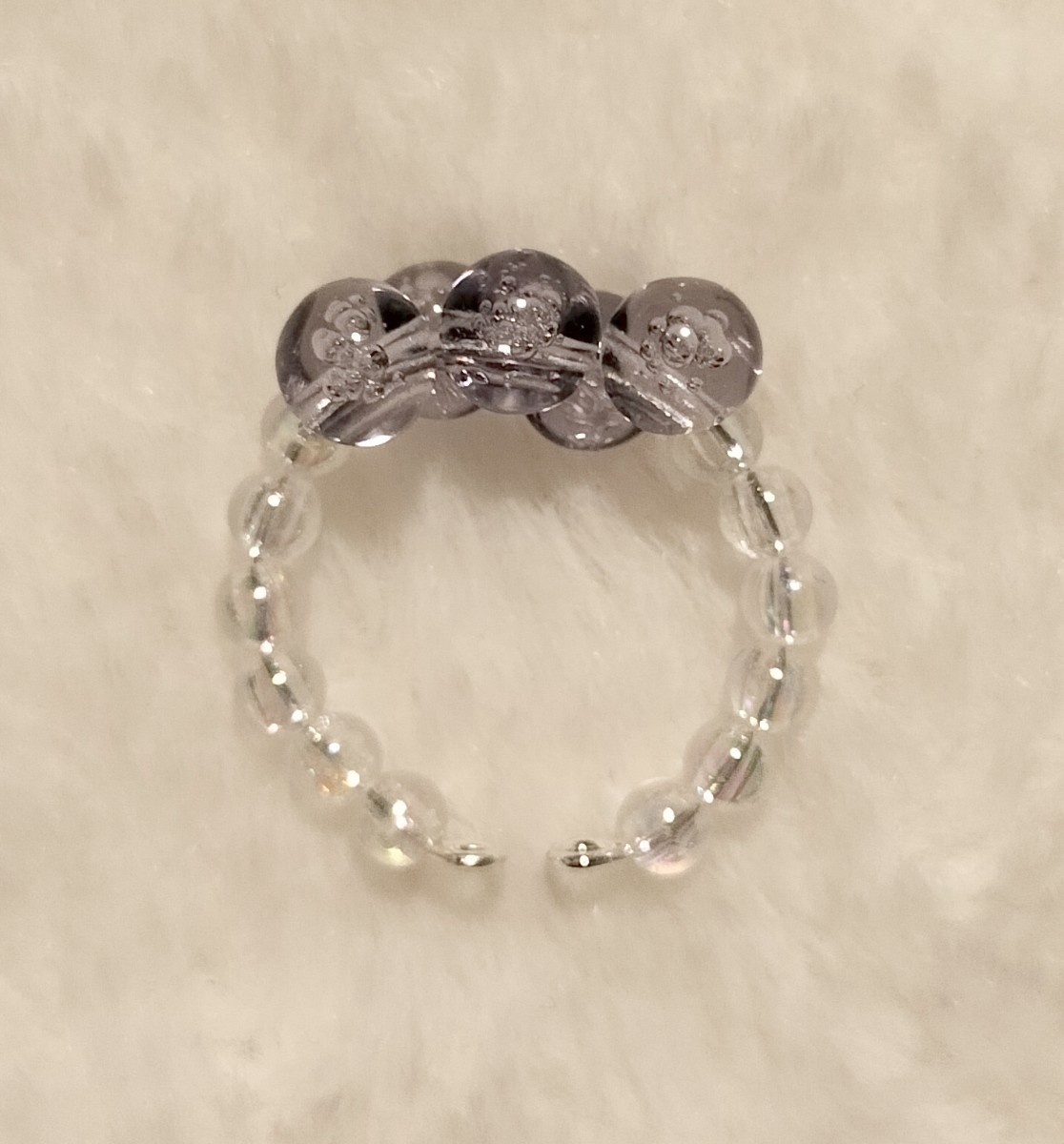 周りはオーロラカラーのビーズで、よりカラーを楽しめるリングです。