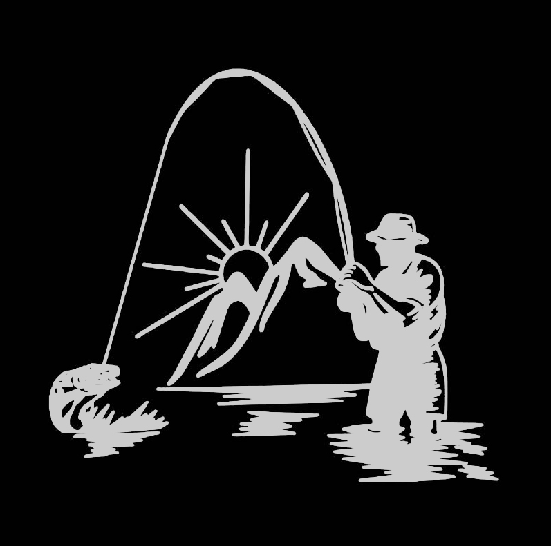 フライフィッシャーマンとトラウトヒットシーン イメージイラストのデカール