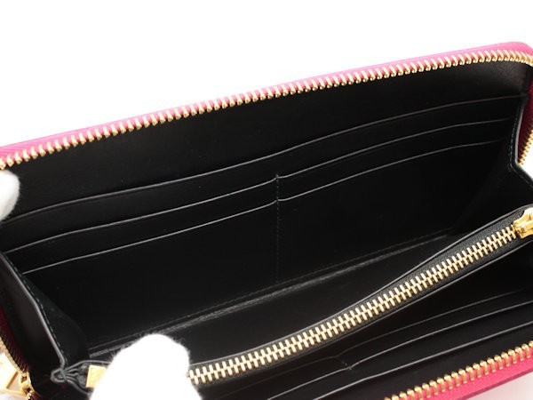 鮮やかなピンクとゴールドの金具がマッチしています。