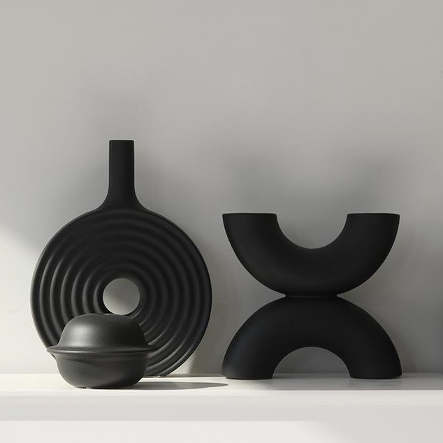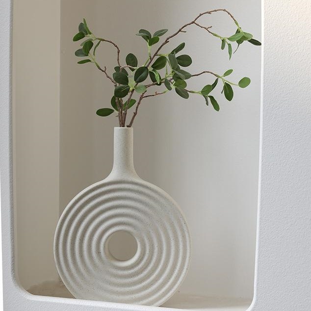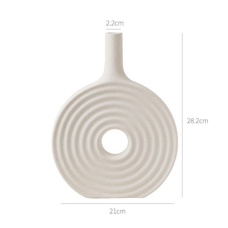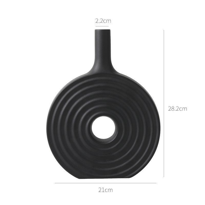 北欧デザインの花瓶 一輪挿し セラミック製 ドーナツ型 フラワーベース 白 黒 ホワイト ブラック 二色展開 上品 リビング 玄関