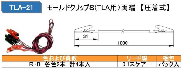 テイシン電機 TLA-21 テストリード モールドクリップ ワニグチ 両端 付き 0.1SQ 赤・黒 2色 各2本 / 4本入り 100cm