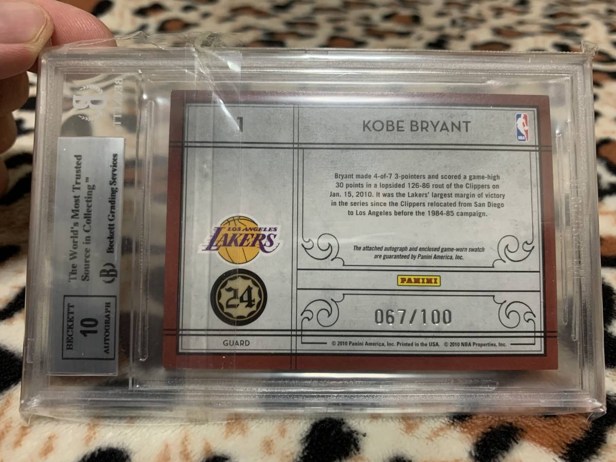 KOBE BRYANT PANINI 直筆サインカード 067/100 2009-10 TIMELESS TREASURES MATERIAL INK BECKETT 鑑定 9
