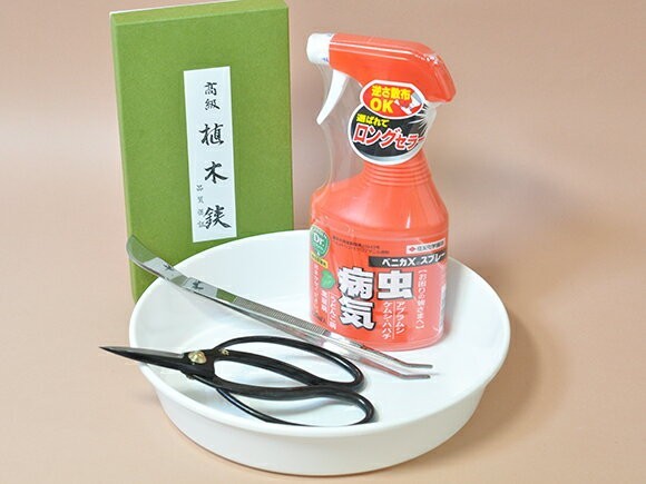 盆栽鋏+ピンセット+薬剤+園芸トレー