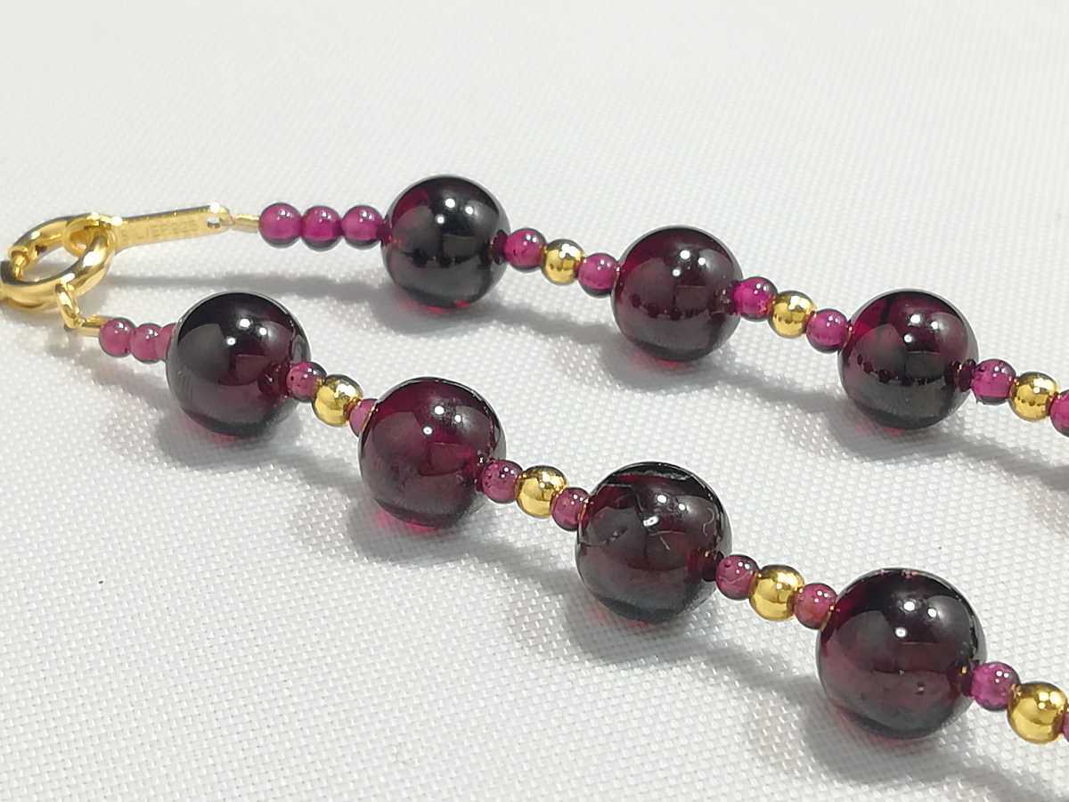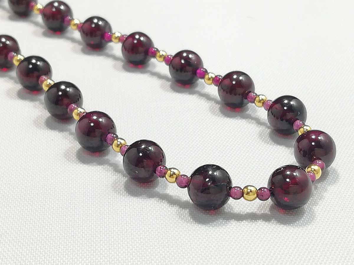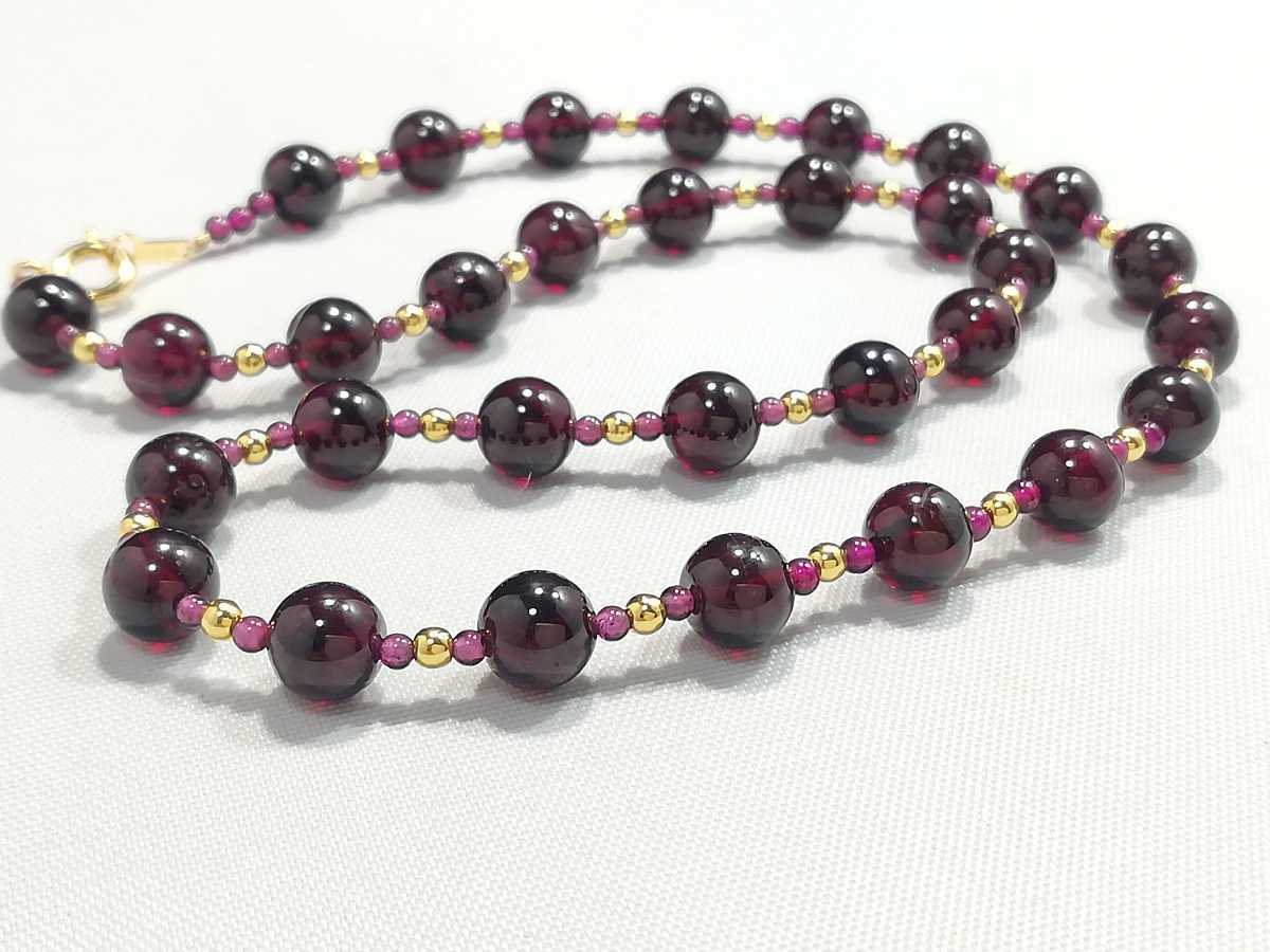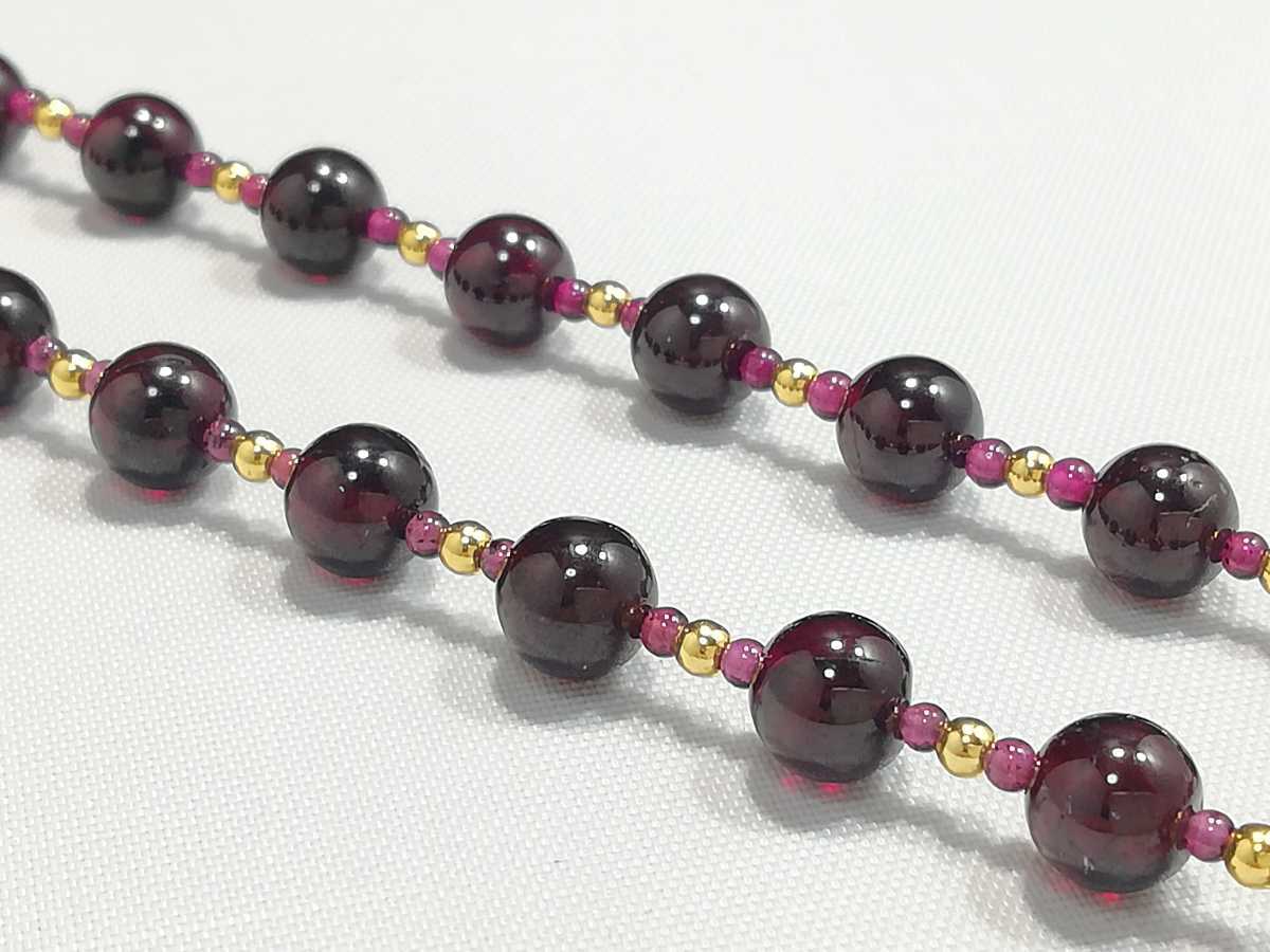 天然ハイグレード丸玉ガ−ネットオリジナルデザインネックレス