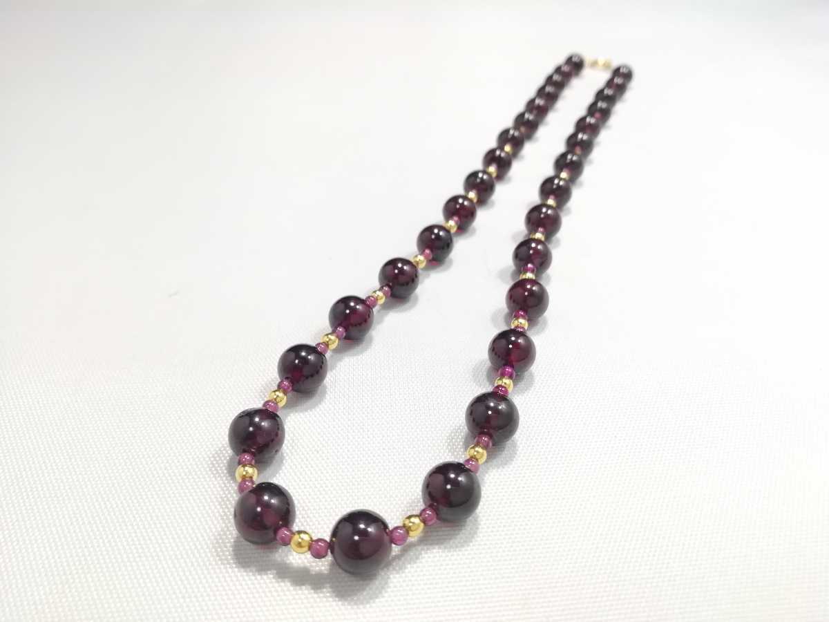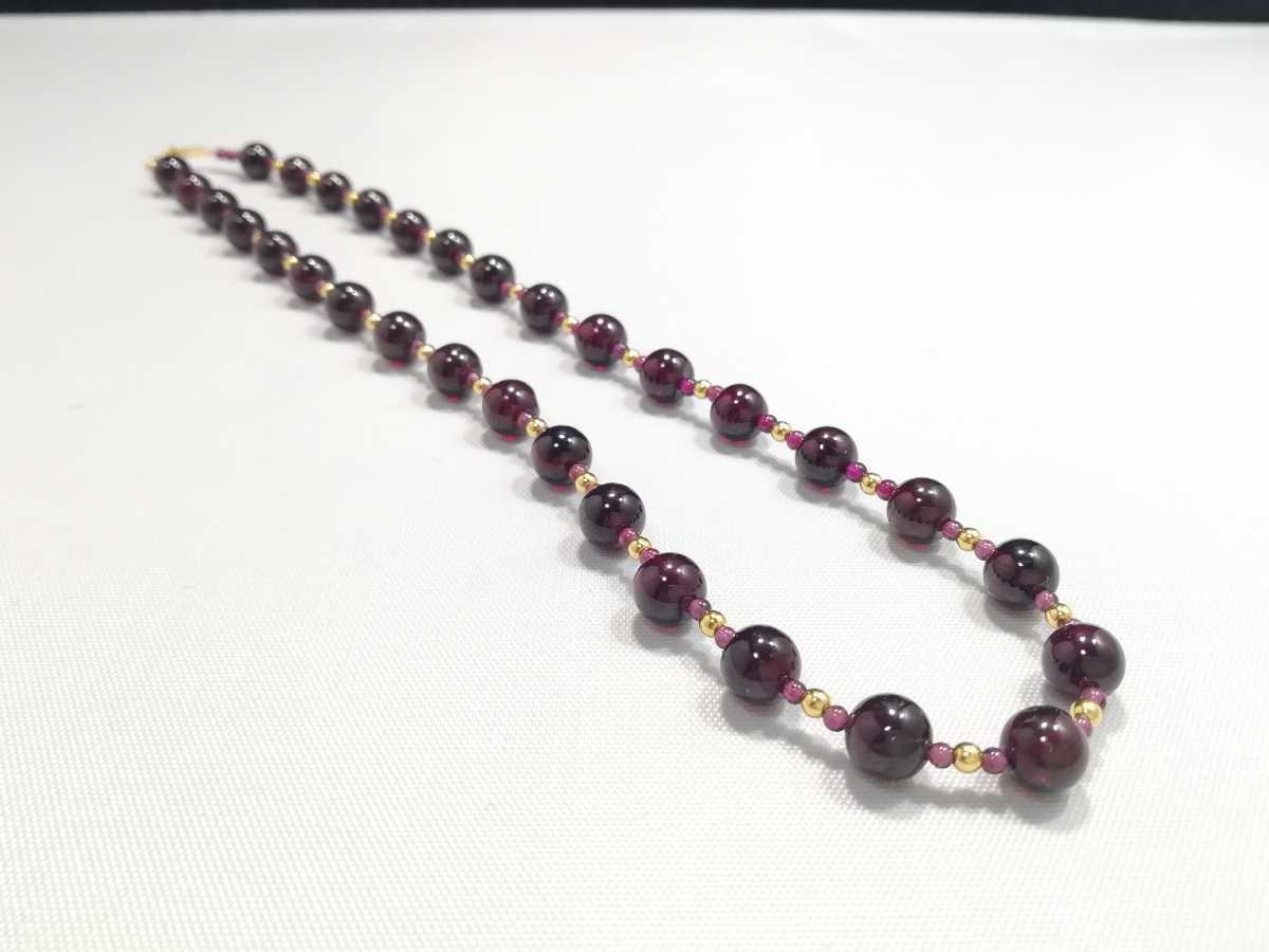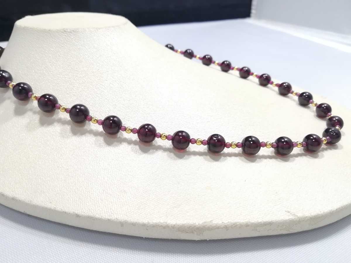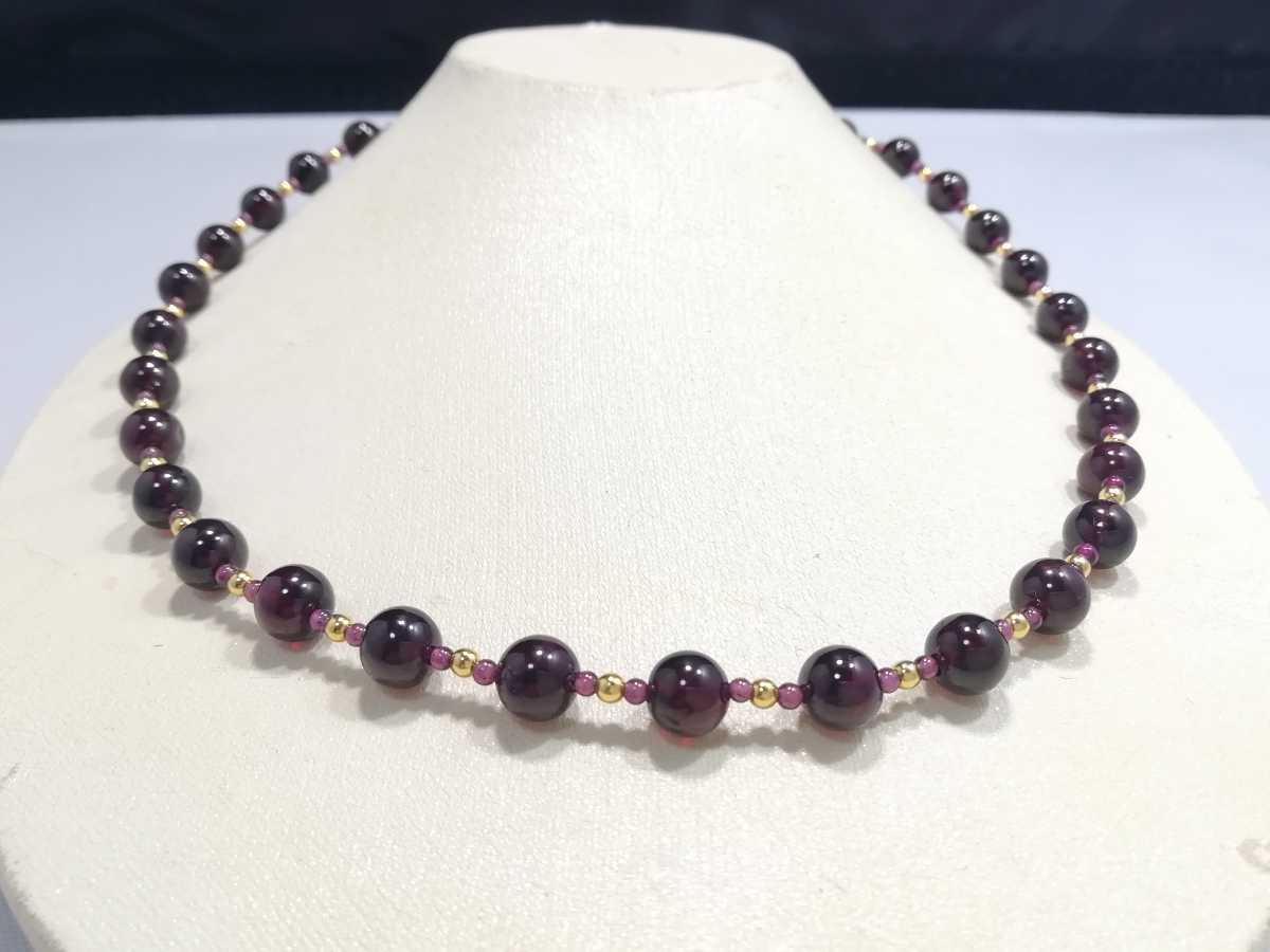 天然ハイグレード丸玉ガ−ネットオリジナルデザインネックレス