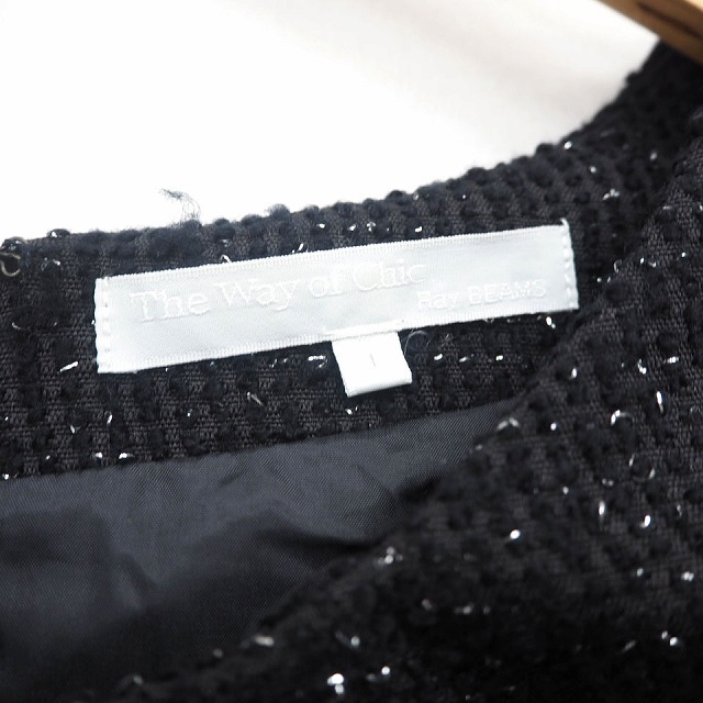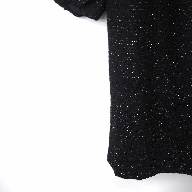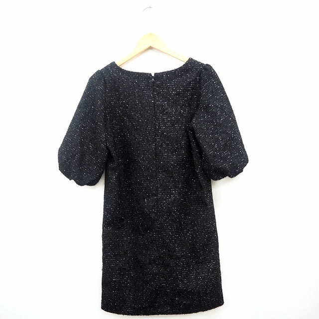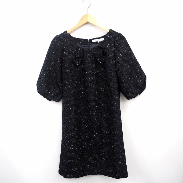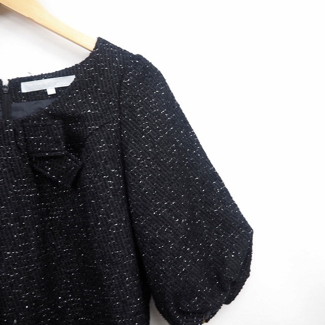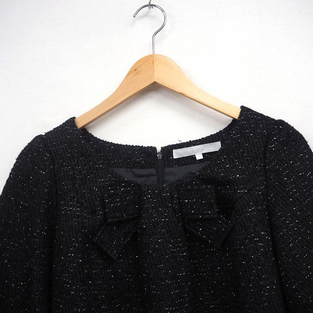 レイビームス Ray Beams ワンピース ラメ リボン 丸首 ひざ丈 七分袖 ウール混 1 ブラック 黒 /MT7 レディース