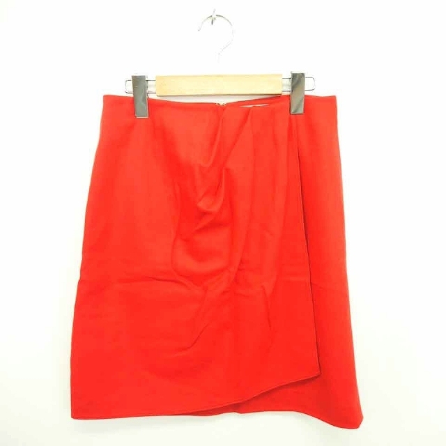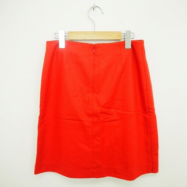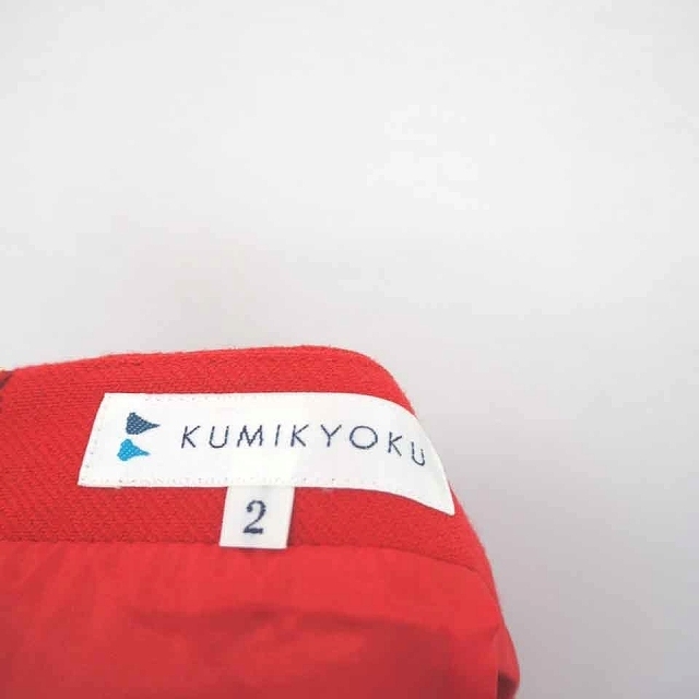 クミキョク 組曲 KUMIKYOKU スカート タイト ひざ丈 バックジップ 無地 シンプル 薄手 ウール 2 赤 レッド /TT11 レディース