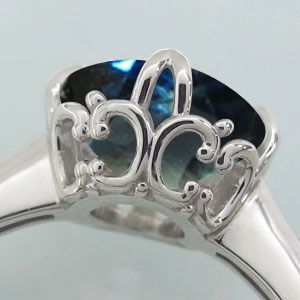 存在感のある輝きに、繊細な石枠に施された唐草模様が、美しいデザインに仕上がっています。