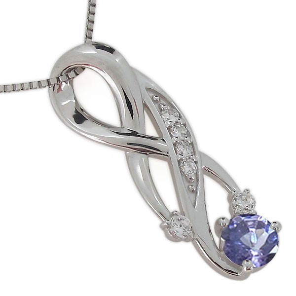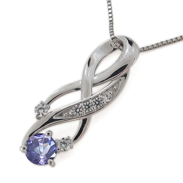 12月誕生石タンザナイトを使用したプラチナ製の、流れ星のような美しい曲線が、エレガントなネックレス(ペンダント)です。