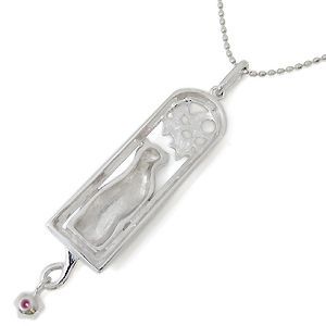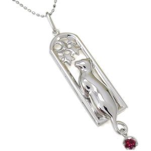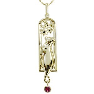 7月誕生石ルビーを一粒使用した、月と星と猫をモチーフにした10金製ネックレス・ペンダントです。