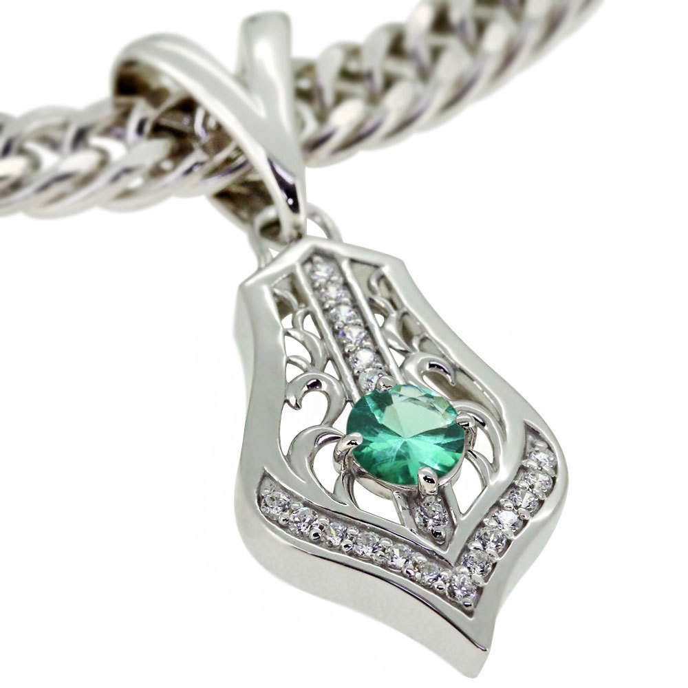 プラチナ ネックレス メンズ ペンダントトップ 喜平 50g用 エメラルド
