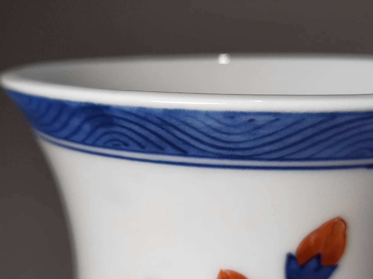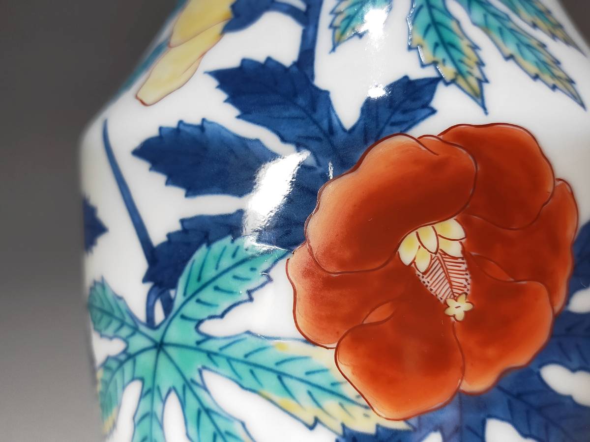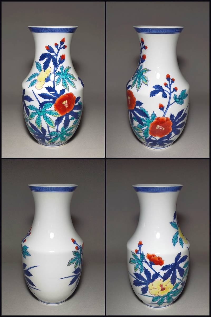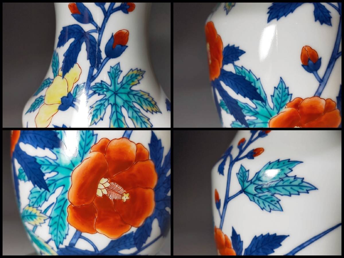 十二代 今泉今右衛門の錦葵絵花瓶です。状態は、割れやカケ等無く良品です。未使用保管品のような綺麗な状態です。 画像にて確認をお願致します。