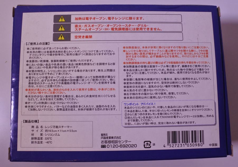 ・レンジ万能スチーマー出品 ・未使用ですが開封している為、中古品としての入札をお願い致します。 ・ノークレームノーリタンでお願いします。 ・24時間以内に連絡を頂ける方、取引手続き開始を出来る方の入札をお願い致します。 ・購入意思のある方の入札をお願い致します。 ・商品受け取り後、24時間以内に受け取り確認の手続き出来る方入札をお願い致します。 ・発送サイズ 60サイズ ・20221211 ootkyuk 202 1210 ・発送方法につきましては、記載させて頂いております発送方法のみとさせて頂きます。 ・発送方法につきましては運送業者変更になることが御座いますのでご了承下さい。 | |||