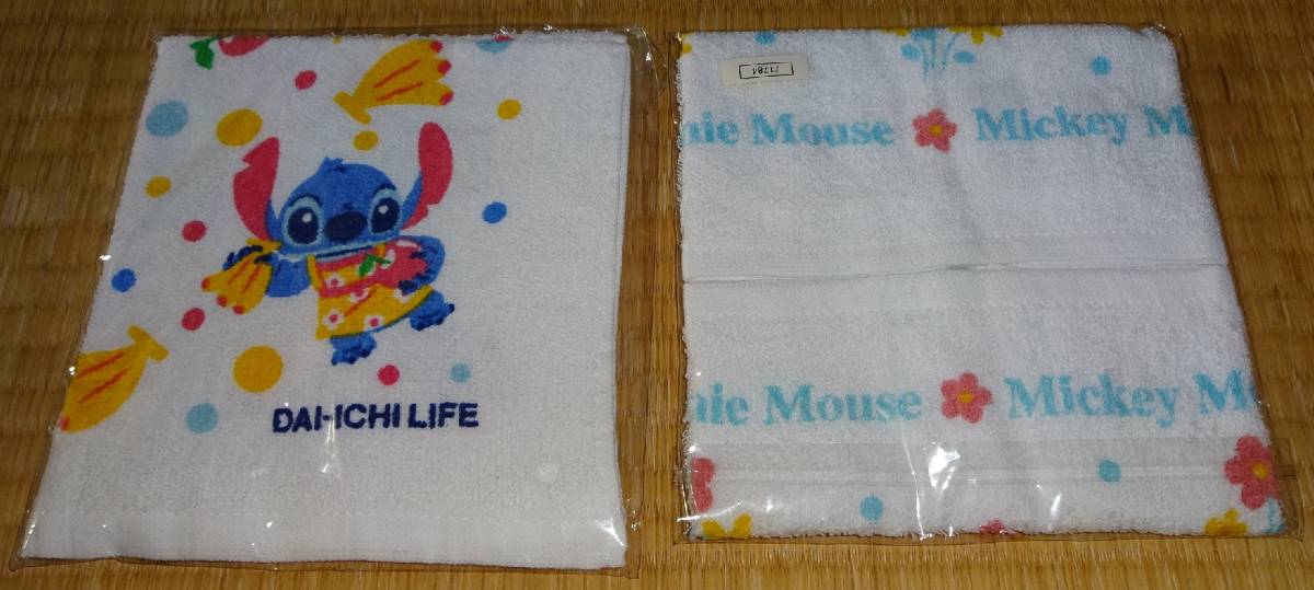 | ディズニー/ミッキーマウス/ステッチ☆ハンドタオル☆2枚セット☆第一生命☆非売品☆未開封 | |||