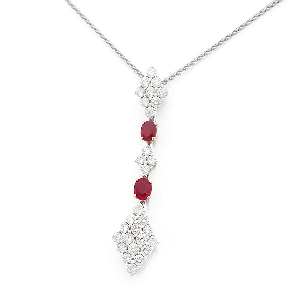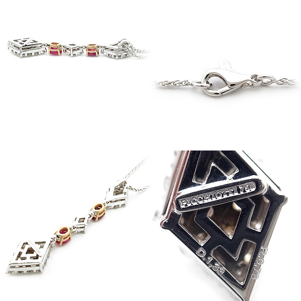 コメント イタリアが世界に誇るハイジュエリーブランド「ピキョッティ(PICCHIOTTI)」。選び抜かれたルビーの鮮やかな煌めきと緻密なセッティングを施した眩い輝きを放つダイヤモンドが織り成すアート。ホワイトゴールドとダイヤモンドの3つのひし形モチーフ(計1.33ct)とイエローゴールドでセットされた2石のルビー(計0.78ct)が優美に揺れる、シンプルで気品のある輝きが胸元を華やかに彩る魅力的なネックレスです。