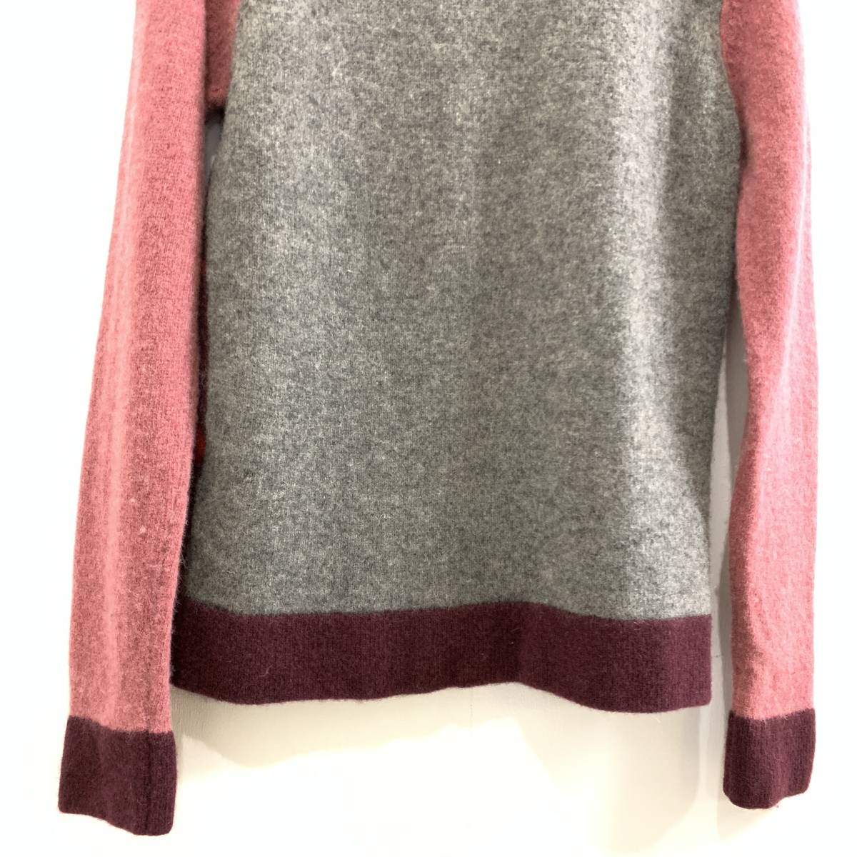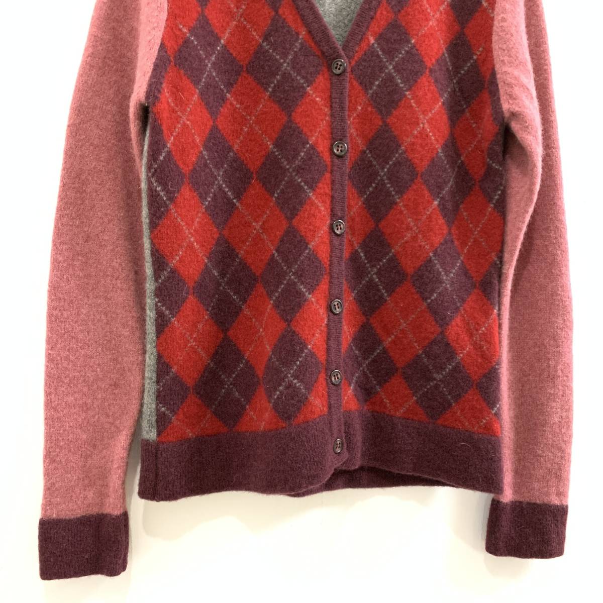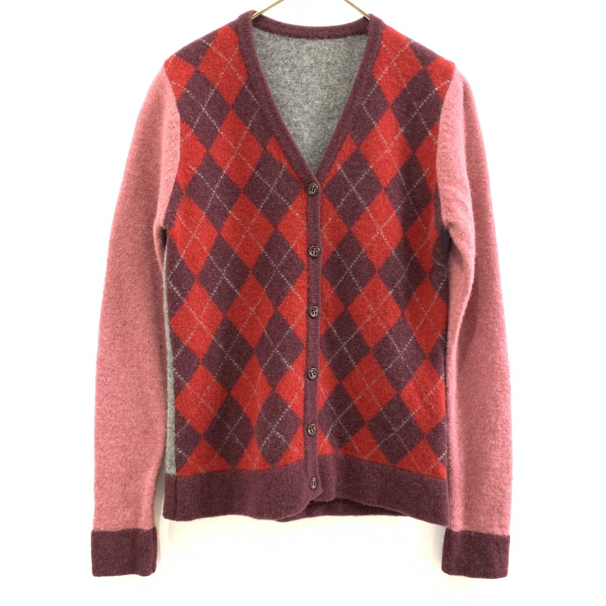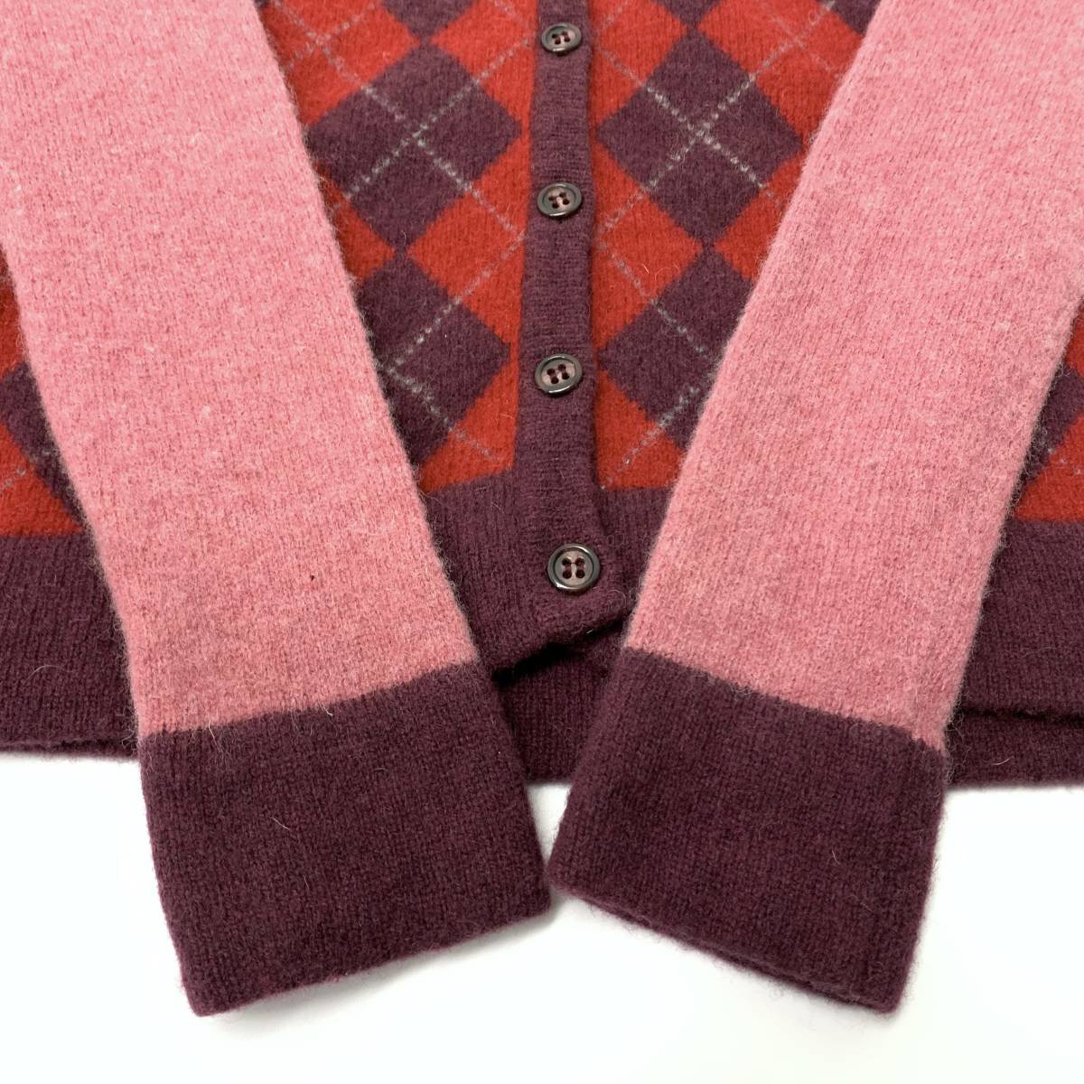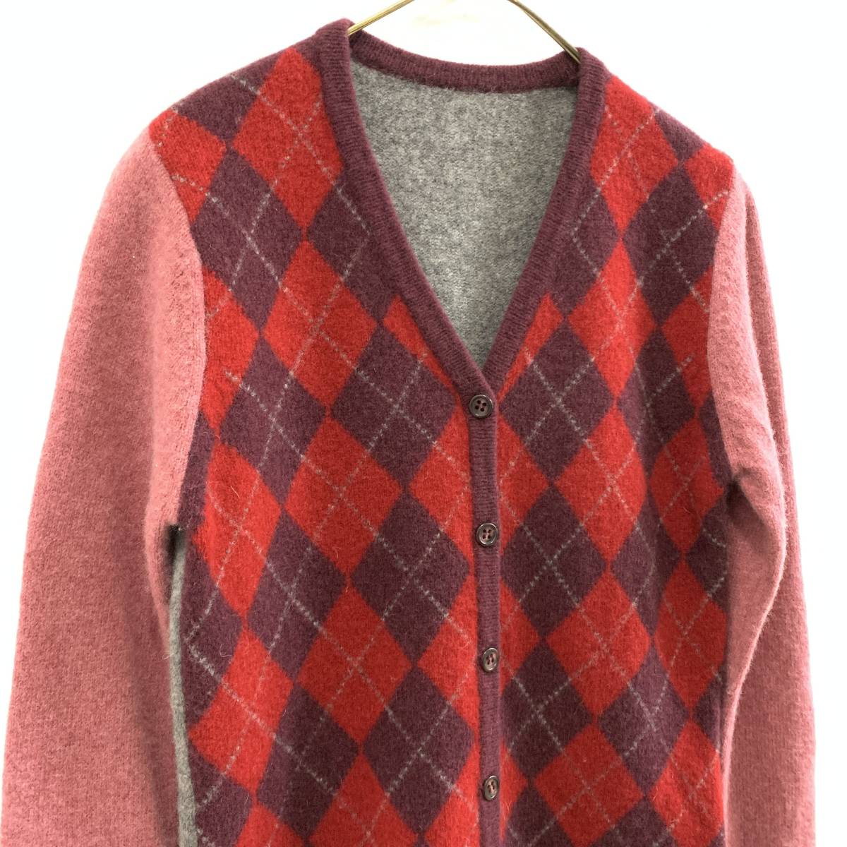 ☆LANDWARDS ランドワーズ Vネックニットカーディガン アーガイル柄 毛100% レッド×ピンク サイズF 古着【送料一律/同梱可能】1