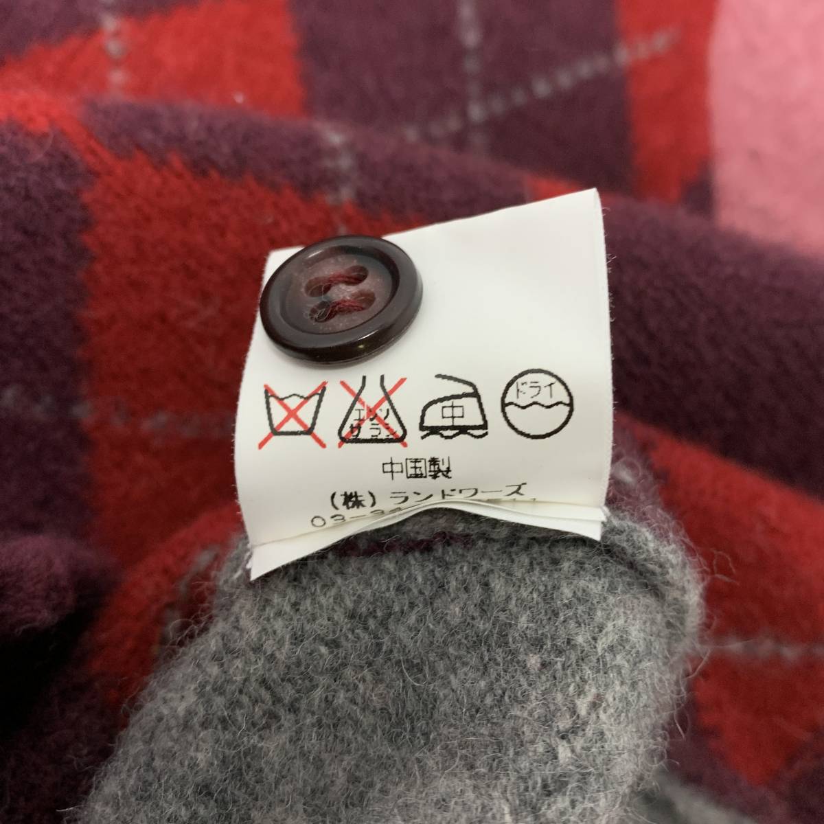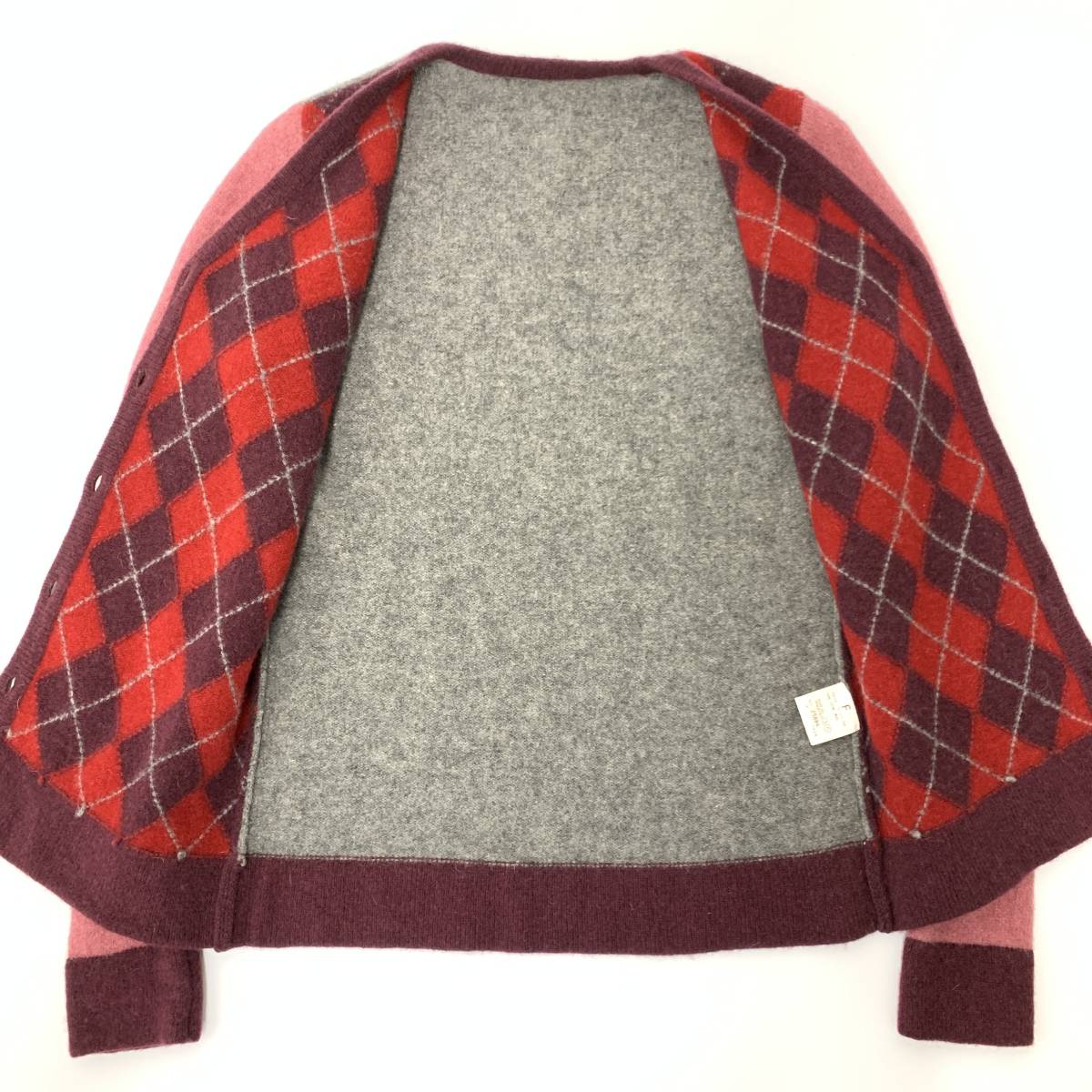 ☆LANDWARDS ランドワーズ レディース Vネックニットカーディガン アーガイル柄 毛100% レッド×ピンク サイズF【送料一律/同梱可能】1の出品です。