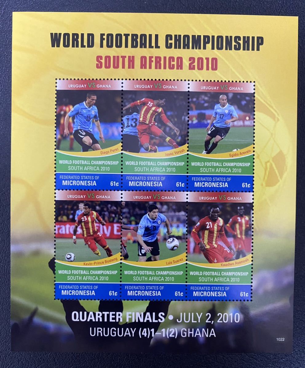 ミクロネシア サッカーワールドカップ 南アフリカ大会 ウルグアイ ガーナ 準決勝 小型シート1種完 未使用 NHです。裏面小難あり。