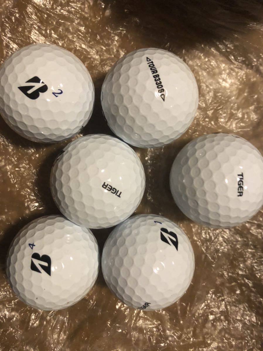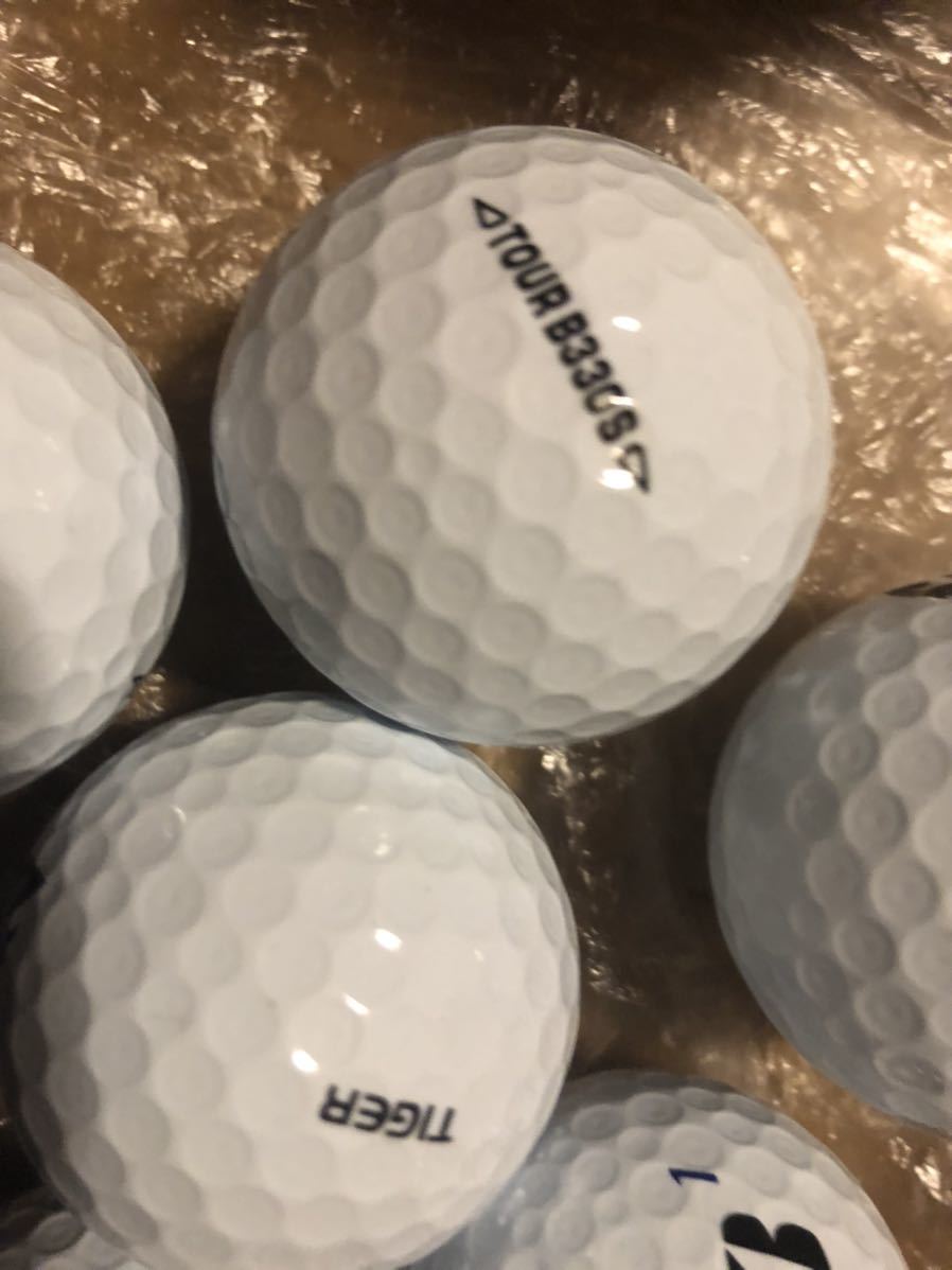 2スリーブ分(6球)。ブリヂストンのタイガーネーム入りTiger Woods Edition Tour B330S(*一世代前、2017年に期間限定販売されたモデル)。Bロゴプリント。日本仕様。数量限定品。