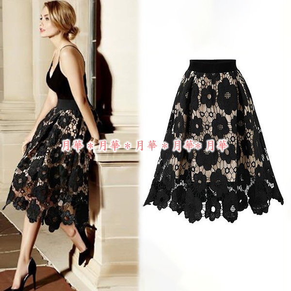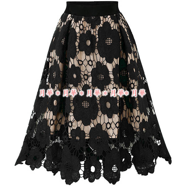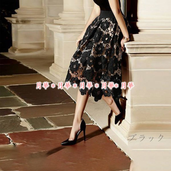 花柄クロッシェレースが大人可愛いシースルー膝丈スカート。