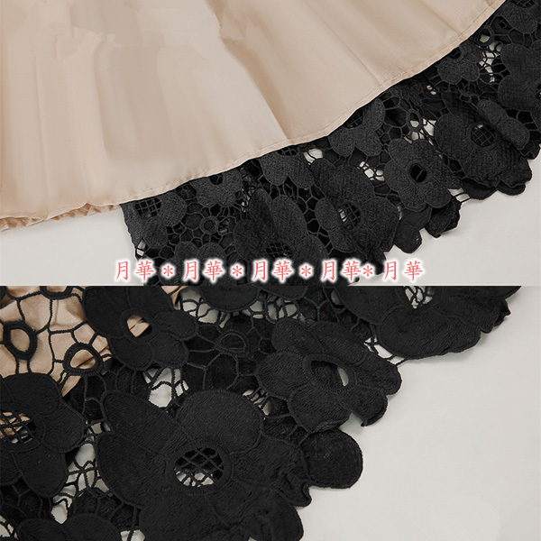 ベージュのミニの裏地が透けて見える透け編みレース。