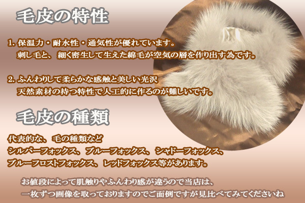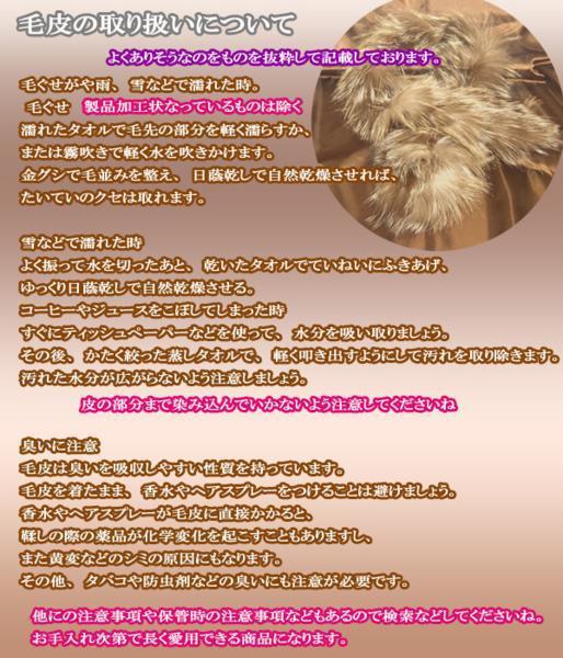 | ★新品★SilverFOX シルバーフォックス★ヤーンマフラー ファー1 表地 狐(シルバーフォックス) 裏地 無し サイズ F 実寸 平置き 全長 約115cm 幅 約19cm 画像は、1個1個撮影しましたので見比べてみてください ファー一覧は、こちらから! 1m弱の長さがあるシルバーフォックスのマフラーです ヤーン(編込み)加工で先端が輪っかになって輪に片方入れるtypeです 刺毛が長く、綿毛が厚くふんわり感があるのが特徴です 毛足が長く甘辛スタイルにも活用できるマフラーです 毛色の特徴でグラデーションっぽいのも特徴です 取引先の参考価格ですが税抜5,800円になります 毛皮は天然素材のため、二つと同じものはございません。 即決ですので入札されましたら購入出来ます 新品商品です 色は、茶色です ★注意★ 裏地無しで編込み加工していますので 毛が薄くなっている部分が必ず出来ますのでご注意ください |